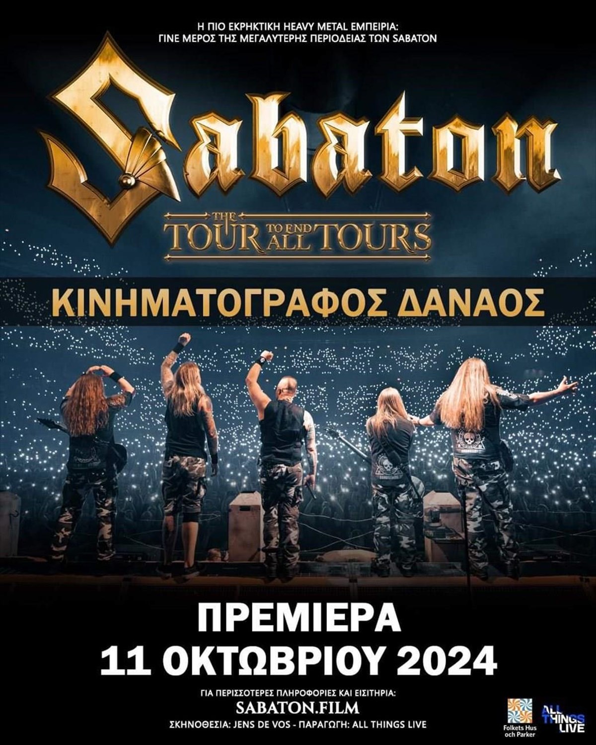 Σε 27 χώρες και πάνω από 200 κινηματογράφους της Ευρώπης και της Αυστραλίας θα προβληθεί στις 11 Οκτωβρίου η ταινία των Sabaton με τίτλο The Tour To End All Tours, η οποία αποτελεί τη συναυλία του σχήματος στο Ziggo Dome Venue του Άμστερνταμ, μπροστά σε 17.000 οπαδούς τους το 2023, στα πλαίσια της ομώνυμης περιοδείας, της μαγαλύτερης και πιο πλούσιας μέχρι στιγμής στην ιστορία του σχήματος. Θα ακολουθήσουν στις 30 και 31 Οκτωβρίου αντίστοιχες προβολές στη βόρεια Αμερική.