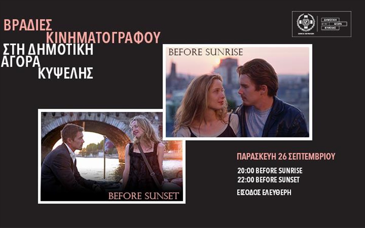 Το πρόγραμμα ξεκινά την Παρασκευή, με ένα από τα πιο αγαπημένα κινηματογραφικά ζευγάρια: ο Τζέσι και η Σελίν μάς ταξιδεύουν από τη Βιέννη της εμβληματικής ταινίας «Πριν το Ξημέρωμα» («Before Sunrise») μέχρι το Παρίσι του «Πριν το Ηλιοβασίλεμα» («Before Sunset»), σε μία διπλή προβολή γεμάτη ρομαντισμό, όνειρα και αναμνήσεις.
