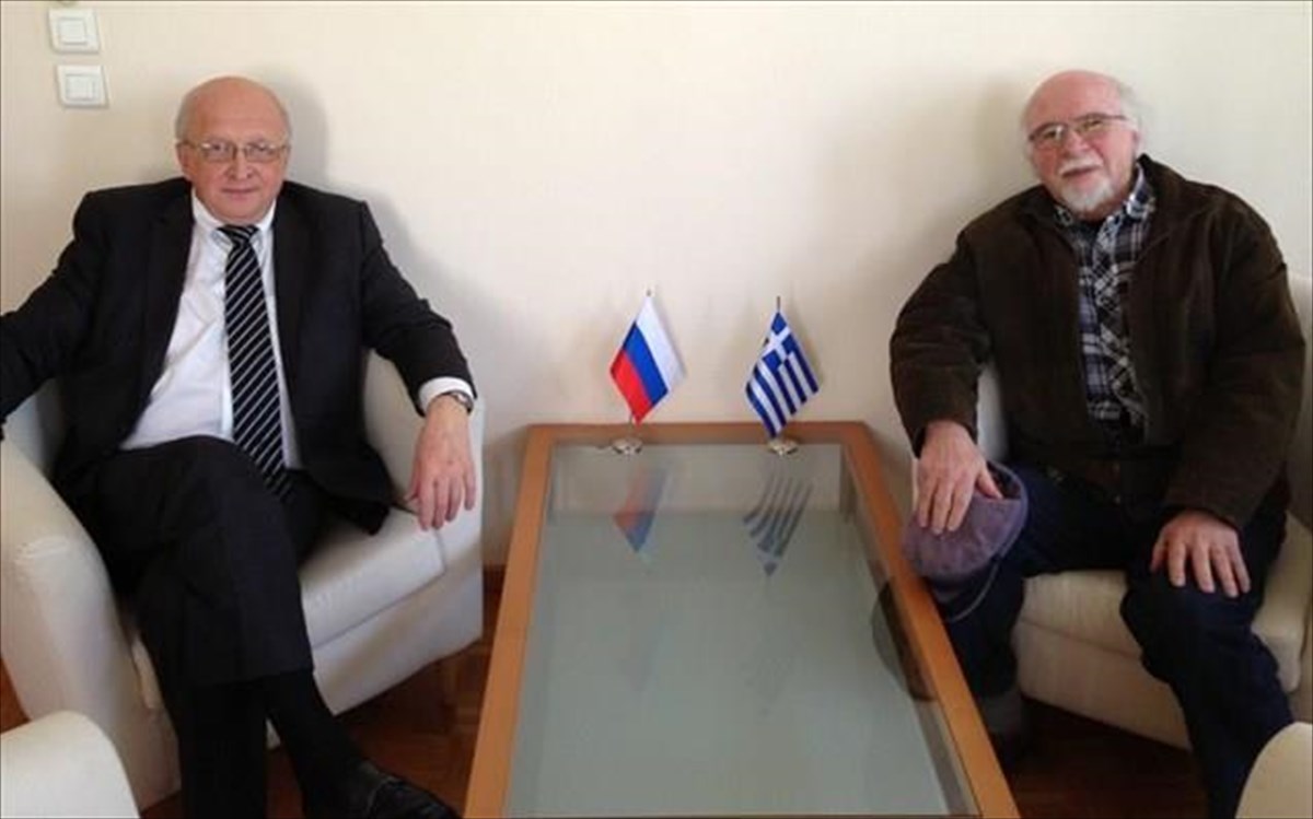Ο σκηνοθέτης Τάσος Λέρτας με τον διευθυντή του Πολιτιστικού και Επιστημονικού Κέντρου της Πρεσβείας της Ρωσικής Ομοσπονδίας στην Αθήνα, Πιότρ Κούπρικοφ.