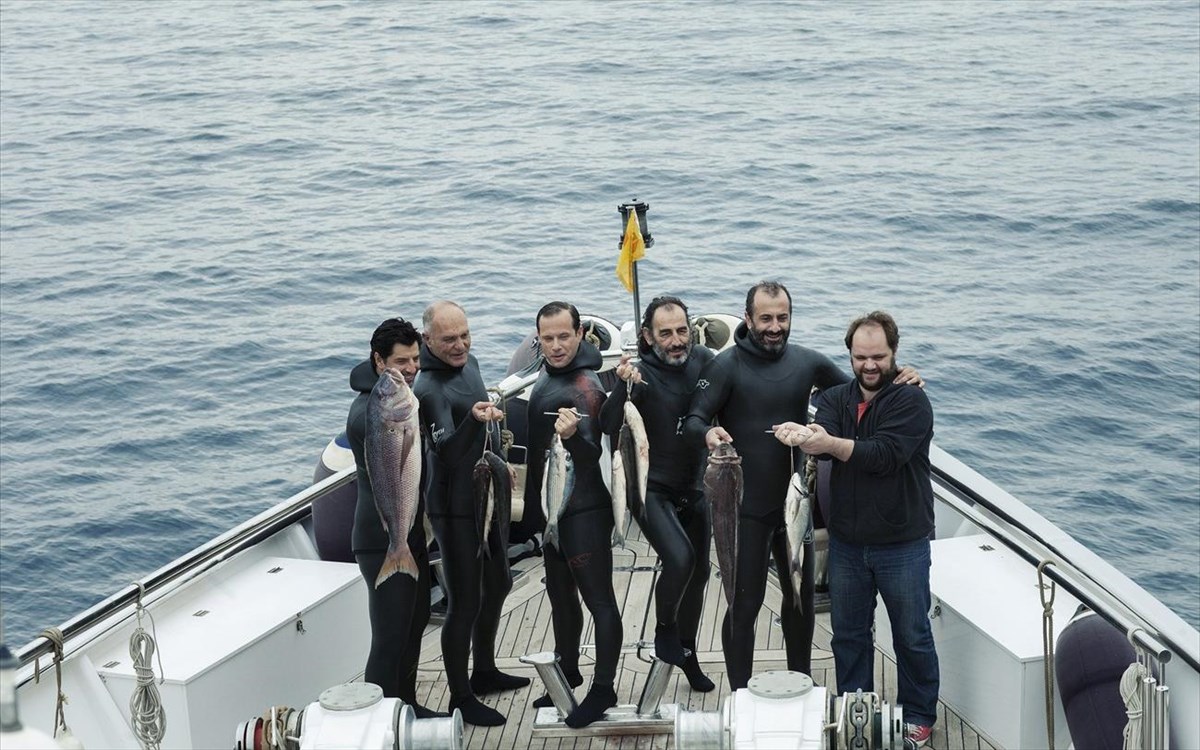 Ιδιοκτήτης του σκάφους είναι ένας μεγαλογιατρός (Γιώργος Κέντρος), ο μεγαλύτερος σε ηλικία της παρέας που έχει το σεβασμό όλων των υπολοίπων. Δίπλα του βρίσκεται ο Χρήστος (Σάκης Ρουβάς), συνάδελφός του στο νοσοκομείο, γύρω στα 40, τελειομανής και εντυπωσιακής εμφάνισης, κάτι που αυξάνει τον ανταγωνισμό στους υπόλοιπους ώστε να τον νικήσουν. Ο πενηντάρης Ζοζέφ (Βαγγέλης Μουρίκης) είναι μεσίτης και για χρόνια φίλος του Γιατρού. Εκνευρίζεται εύκολα και αποδεικνύεται συμπλεγματικός. Ο Γιώργος (Πάνος Κορώνης) είναι γύρω στα 45, συνάδελφος του Ζοζέφ και αρκετά μονοδιάστατος. Έχει δύο παιδιά και είναι αυτό που φανταζόμαστε ως τον μέσο άνδρα της ηλικίας του. Ο Γιάννης (Γιώργος Πυρπασόπουλος) είναι ασφαλιστής και σύζυγος της κόρης του Γιατρού. Οι δύο τους ποτέ δε συμπάθησαν ο ένας τον άλλο και δεν πρόκειται να το κάνουν σε αυτή την περιπέτεια. Ο τελευταίος της παρέας είναι ο Δημήτρης (Μάκης Παπαδημητρίου), γύρω στα 35, μικρός αδερφός του Γιάννη και ο μικρότερος της παρέας. Είναι και ο πιο αφελής απ’ όλους, απόλυτα εξαρτημένος από τη μητέρα του και το μεγάλο του αδερφό. Προσθέστε και τρεις άνδρες του υπηρετικού προσωπικού και έχετε έτοιμη τη μικρογραφία μιας δυναμικής ανδρικής κοινότητας.