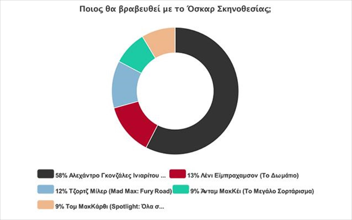 Εξίσου επιτυχείς ήταν οι προβλέψεις και για το Όσκαρ Σκηνοθεσίας, αφού το 58% ψήφισε Ινιαρίτου δαγκωτό.