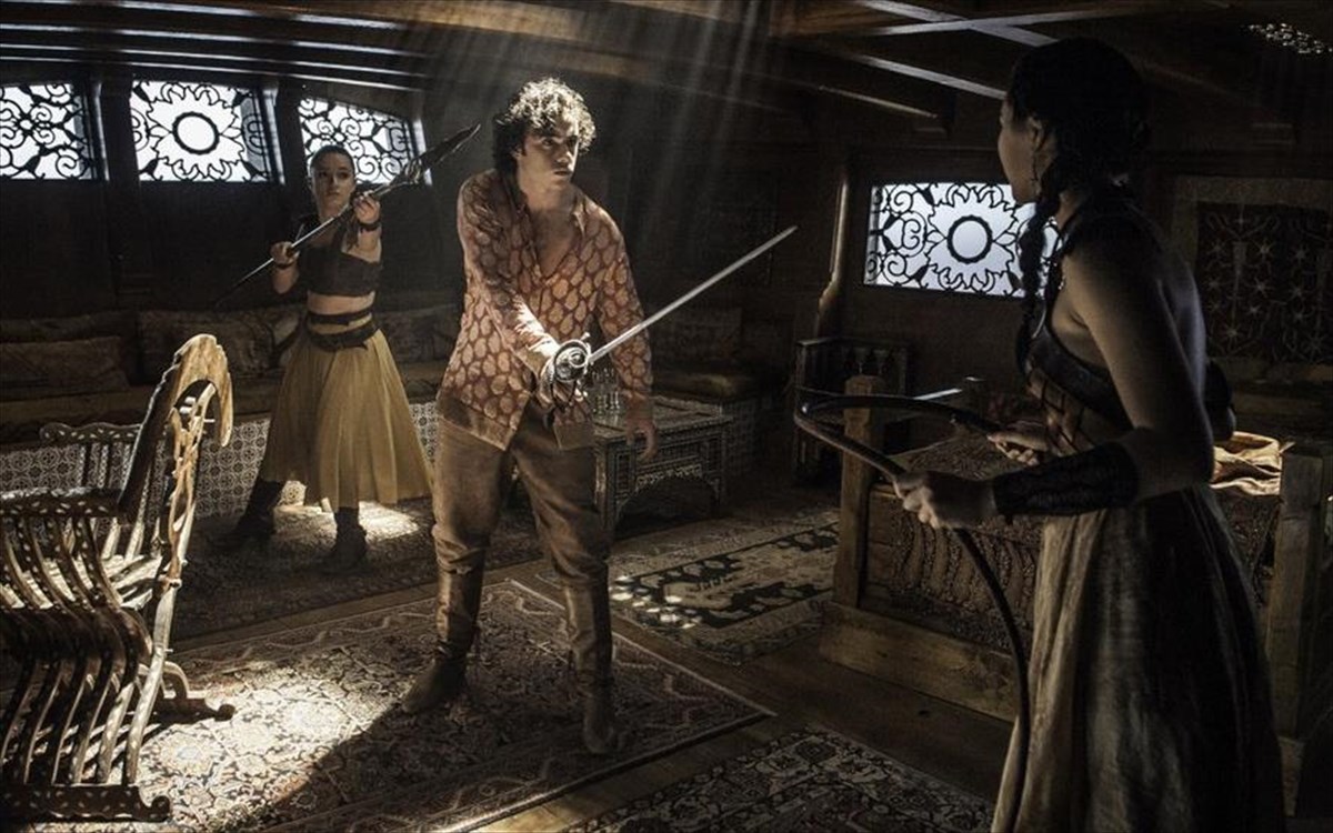 Και μιλώντας για τις πατριαρχικές αντιλήψεις στο σύμπαν του Game of Thrones, ας μεταπηδήσουμε στην Ντενέρις. Κατέληξε αιχμάλωτη των Ντοθράκι, οι οποίοι προσπαθούν να βρουν τρόπους να… περάσουν καλά μαζί της, χωρίς φυσικά να πέφτει λόγος στην ίδια. Και καθώς την πηγαίνουν στον αρχηγό τους, τον οποίο μόνο που δε φτύνει στα μούτρα, μόλις μάθει πως είναι η χήρα του Καλ Ντρόγκο την ελευθερώνει, μόνο όμως για να μεταφερθεί σε ένα ναό που βρίσκονται όλες οι χήρες κάθε πολέμαρχου των Ντοθράκι. Την ίδια στιγμή, ο Ντάριο Ναχάρις με τον Σερ Τζόρα βρίσκονται στα χνάρια της, αλλά είναι απελπιστικά μόνοι για να τη σώσουν και ο άσωτος δράκος Ντρόγκον είναι εξαφανισμένος. Αναμένουμε εξελίξεις κι εδώ, ελπίζοντας η ιστορία της διάσωσης της Ντενέρις να μη χρειαστεί όλη τη σεζόν για να ολοκληρωθεί. Πίσω στην Μερίν επικρατεί αναρχία, με τους Sons of Harpy να έχουν καταλάβει ατύπως την εξουσία, βάζοντας αυτή τη φορά φωτιά στο στόλο που ήταν έτοιμος να ταξιδέψει κάποια στιγμή προς το Γουέστερος. Το βέβαιο πάντως είναι πως οι συνομιλίες του Τίριον με τον Βάρις δε θα σταματήσουν ποτέ να είναι αφάνταστα διασκεδαστικές και θα μπορούσαμε να τους δούμε σε μια ολόκληρη ταινία στυλ «Before Sunrise» που απλά θα περπατούν και θα μιλάνε για τα πάντα.