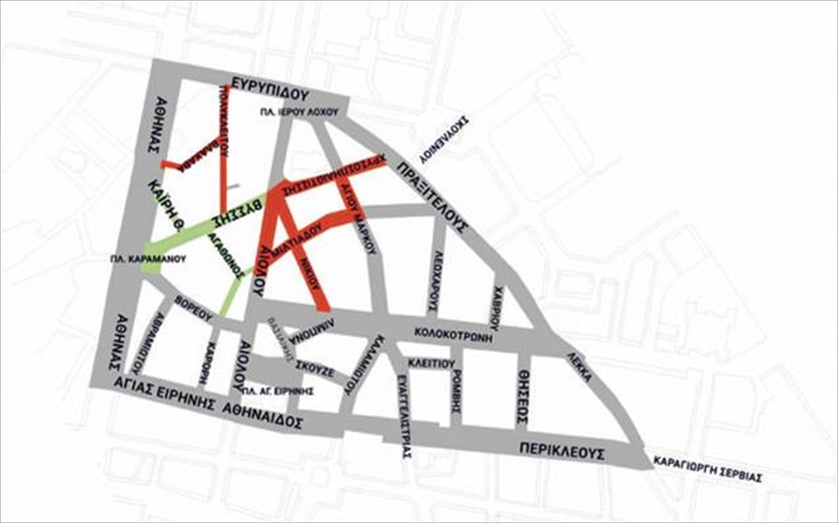 Οι οδηγοί θα πρέπει να γνωρίζουν ότι από την Πέμπτη 22 Ιουνίου δεν θα μπορούν πλέον να στρίβουν αριστερά από την οδό Πραξιτέλους προς τις οδούς Χρυσοσπηλιωτίσσης, Βύσσης και Νικίου. Υπενθυμίζεται ότι η κίνηση των οχημάτων από το Σύνταγμα και τη Σταδίου προς την οδό Αθηνάς, μπορεί να γίνεται μόνο από τις οδούς Μητροπόλεως, Καραγιώργη Σερβίας και Σοφοκλέους.
