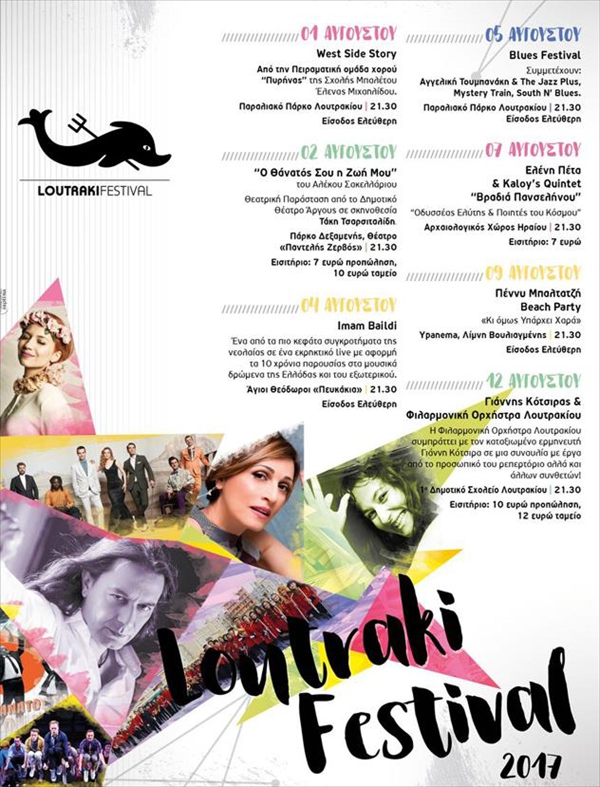 Το αναλυτικό πρόγραμμα των εκδηλώσεων του Φεστιβάλ Λουτρακίου 2017 έχει ως εξής: