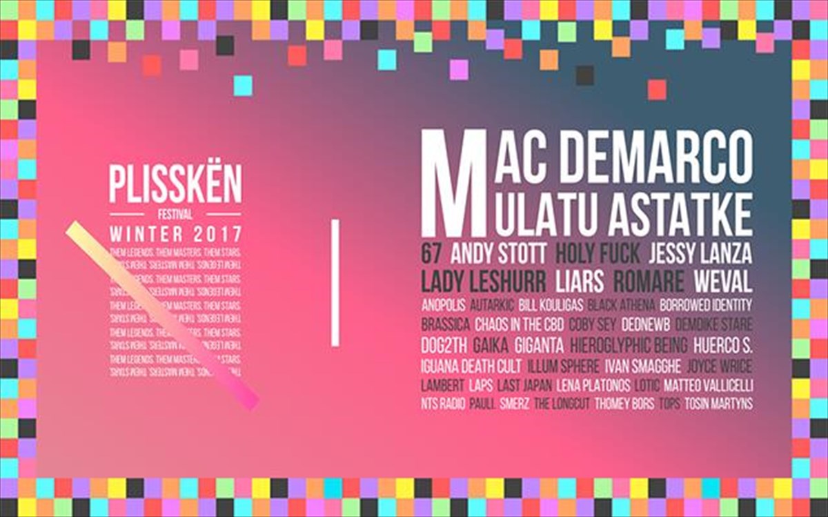 Headliners της φετινής χρονιάς δεν είναι άλλοι από τον χαρισματικό Καναδό indie superstar που ακούει στο όνομα Mac DeMarco καθώς και τον πατέρα της Ethio-jazz Mulatu Astatke. Πολυαναμενόμενες, όμως, είναι και οι ζωντανές εμφανίσεις του Andy Stott, που επιστρέφει στο φεστιβάλ μετά το 2015, των σπουδαίων dance punk πειραματιστών Liars,  του Romare και της μπάντας του που εγγυάται για το ταλέντο του η περίφημη Ninja Tune καθώς και του πιο πολυσυζητημένου rap crew της χρονιάς, αυτό των 67 από το Νότιο Λονδίνο. Από το Plisskën δεν θα μπορούσαν να λείπουν σχήματα όπως οι εξερευνητές του ρυθμικού θορύβου Holy Fuck, η «Πρώτη Κυρία» της grime, Lady Leshurr, το εκρηκτικό ηλεκτρονικό σχήμα των Weval, αλλά και η underground Καναδή ποπ σταρ της Hyberdub, Jessy Lanza.