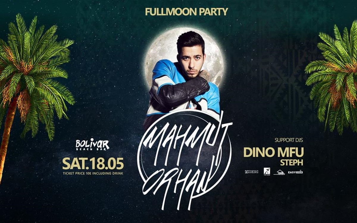 Tο Bolivar Beach bar υποδέχεται το Σάββατο 18 Μαΐου την πρώτη πανσέληνο του καλοκαιριού και τι πιο ιδανικό για την περίσταση από τους soulful deep house ήχους του σπουδαίου κι ανερχόμενου Τούρκου παραγωγού Mahmut Orhan. Ετοιμαστείτε για μια από τις πιο ατμοσφαιρικές βραδιές του Bolivar, με έναν από τους καλύτερους Dj της γενιάς του που θα μας απογειώσει κάτω από το φως του γεμάτου φεγγαριού. Support Dj Set Dino MFU & Steph.
