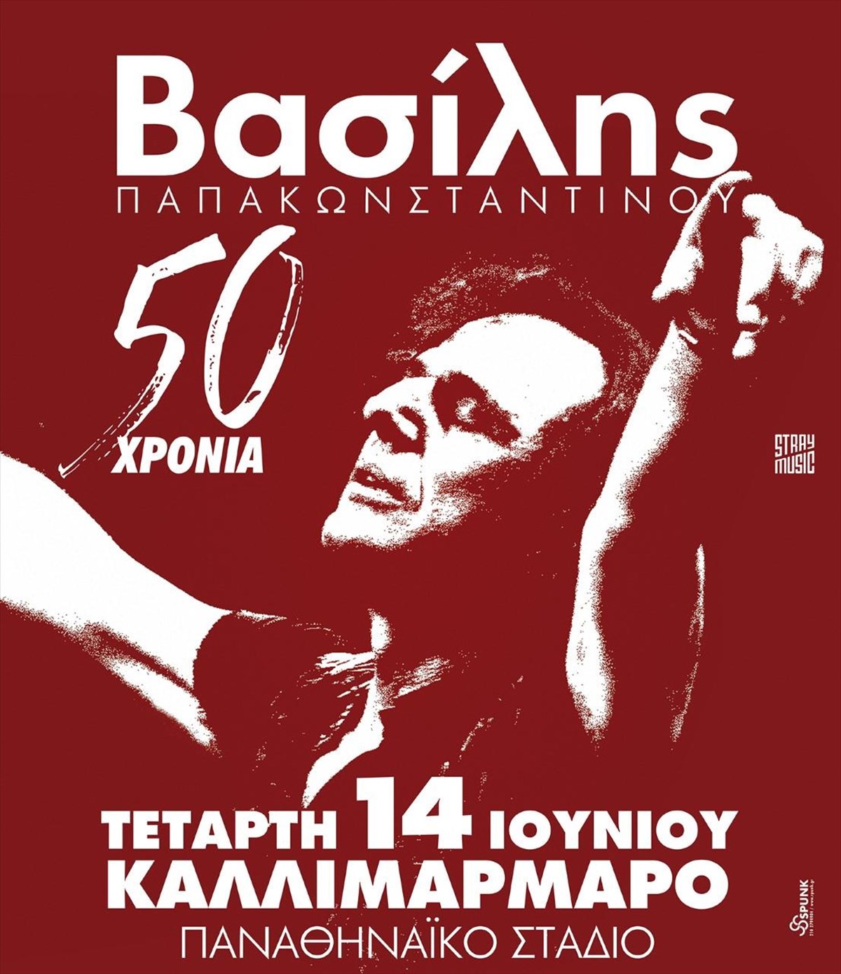 50 χρόνια κλείνει φέτος ο Βασίλης Παπακωνσταντίνου στην ελληνική δισκογραφία. Και τα γιορτάζει μαζί μας, με μια μεγάλη συναυλία - γιορτή στο Καλλιμάρμαρο την Τετάρτη 14 Ιουνίου.Μια συναυλία που θα συνοψίσει τις πιο σημαντικές στιγμές μια μουσικής πορείας που έχει καταφέρει να σημαδέψει τις ζωές όλων μας.