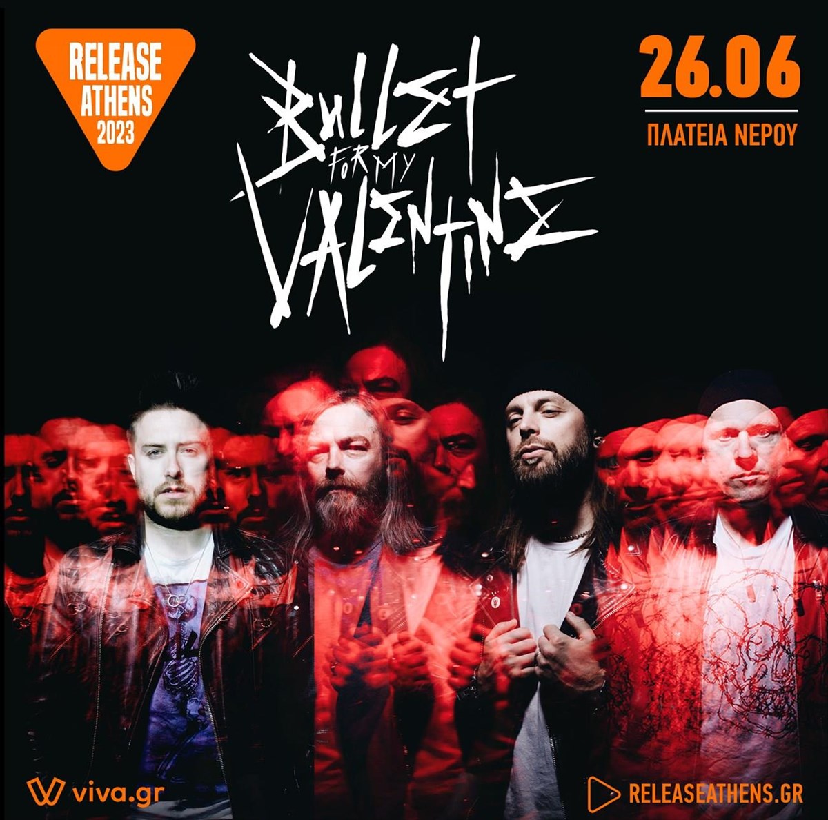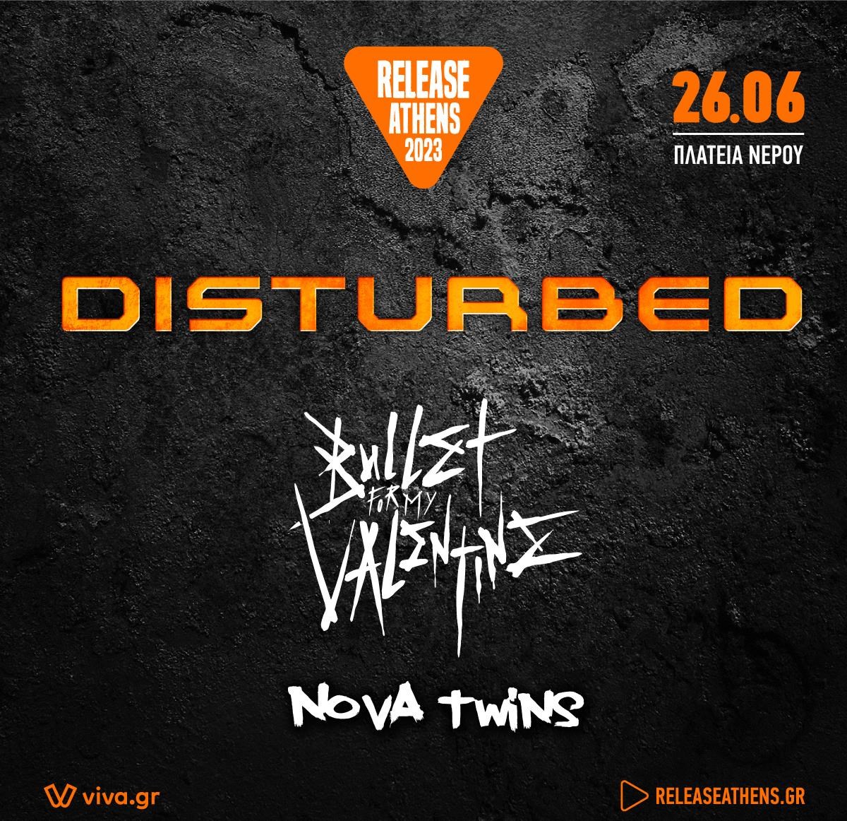 Το Release Athens 2023 υποδέχεται τους καταιγιστικούς Bullet For My Valentine, τη Δευτέρα 26 Ιουνίου, στην Πλατεία Νερού. Το πολύ επιτυχημένο γκρουπ από την Ουαλία πλαισιώνει ιδανικά τους headliners Disturbed και τις Nova Twins, σε μια σπουδαία ημέρα για τους φίλους του σύγχρονου metal.