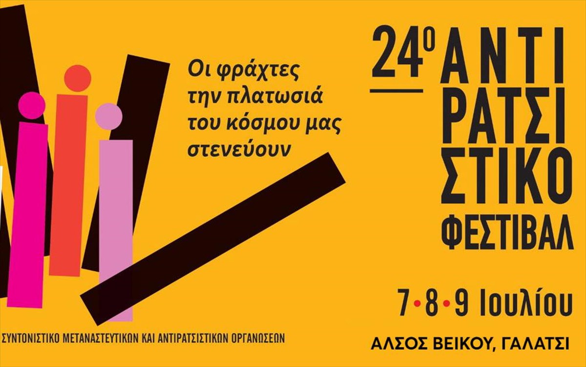 Θεσμός πλέον στην πόλη μας, το Αντιρατσιστικό Φεστιβάλ στέλνει κάθε φορά το πιο ηχηρό και σημαντικό μήνυμα μέσα από τις εκδηλώσεις του, επιβεβαιώνοντας με τον πιο όμορφο και ψυχαγωγικό τρόπο, ότι όλοι είμαστε το ίδιο, είμαστε ένα. Με σύνθημά του «Οι φράχτες την πλατωσιά του κόσμου μας στενεύουν», το 24ο Αντιρατσιστικό Φεστιβάλ Αθήνας, η πιο ανοιχτή και πιο πλατιά γιορτή της πόλης, που είναι ταυτόχρονα αφορμή διεκδίκησης ίσων δικαιωμάτων για όλους και όλες (ανεξάρτητα από χρώμα, φυλή, φύλο, θρησκεία και ερωτικό προσανατολισμό), ανοίγει τις πύλες του στις 7, 8, 9 Ιουλίου στο Άλσος Βεΐκου (Α' Είσοδος από Αθήνα), με συζητήσεις, συναυλίες, προβολές, εκθέσεις, πολυεθνικές κουζίνες, παζάρια και χορευτικά δρώμενα.