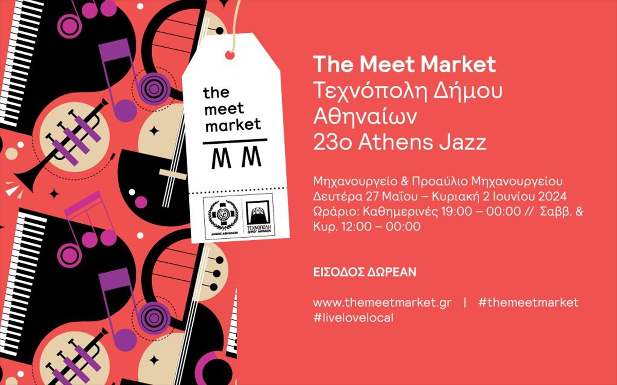 27.05-02.06 || The Meet Market #JazzEdition | Στο πλαίσιο του Athens Jazz | Η αγαπημένη αγορά της πόλης συναντά το 23ο Athens Jazz και κλείνουν το μάτι στο καλοκαίρι στήνοντας τη μεγαλύτερη γιορτή του χρόνου. 100+ εκθέτες, dj sets, street food & cocktails, δωρεάν δραστηριότητες για παιδιά. Μια νομαδική αγορά καινοτομίας και δημιουργικότητας. Ρούχα, κοσμήματα, αξεσουάρ, προϊόντα περιποίησης & ευεξίας, τέχνης & διακόσμησης, είδη για το παιδί, νόστιμες λιχουδιές, συλλεκτικά vintage αντικείμενα, street food, διαδραστικά παιχνίδια, DJ sets & θετικά vibes σε μια γιορτή του τοπικού επιχειρηματικού πνεύματος | Είσοδος Ελεύθερη
