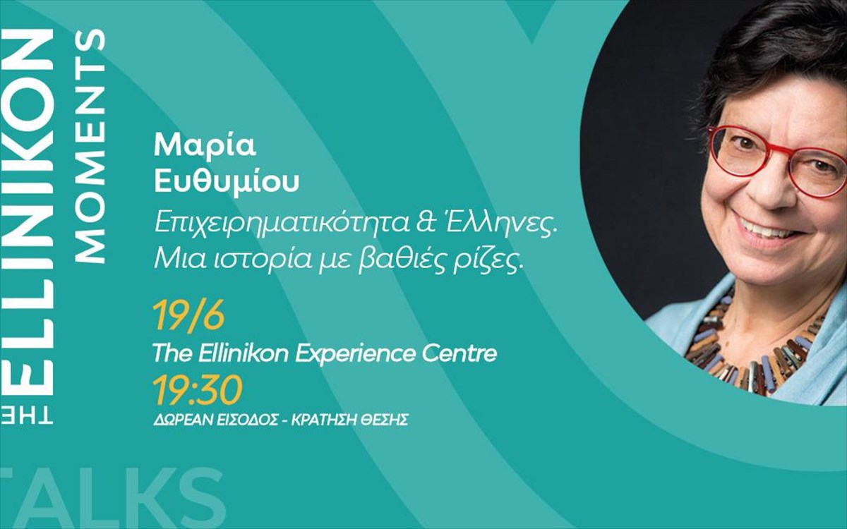 Η εκδήλωση με την αναμενόμενη συναρπαστική αφήγηση της Μαρίας Ευθυμίου «Επιχειρηματικότητα και Έλληνες: Μια ιστορία με βαθιές ρίζες» θα πραγματοποιηθεί την Τετάρτη 19 Ιουνίου στις 19:30 στο The Ellinikon Experience Centre, με ελεύθερη είσοδο και απαραίτητη την προκράτηση θέσης εδώ.