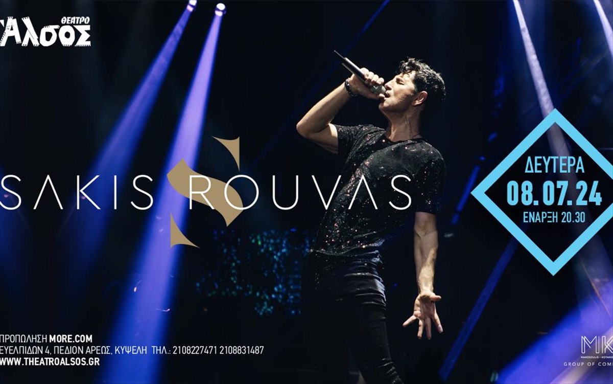 Μία βραδιά με παλμό, μουσική και τον κορυφαίο Έλληνα σταρ Σάκη Ρουβά για ένα μεγάλο καλοκαιρινό πάρτι την Δευτέρα 8 Ιουλίου στο Θέατρο Άλσος.