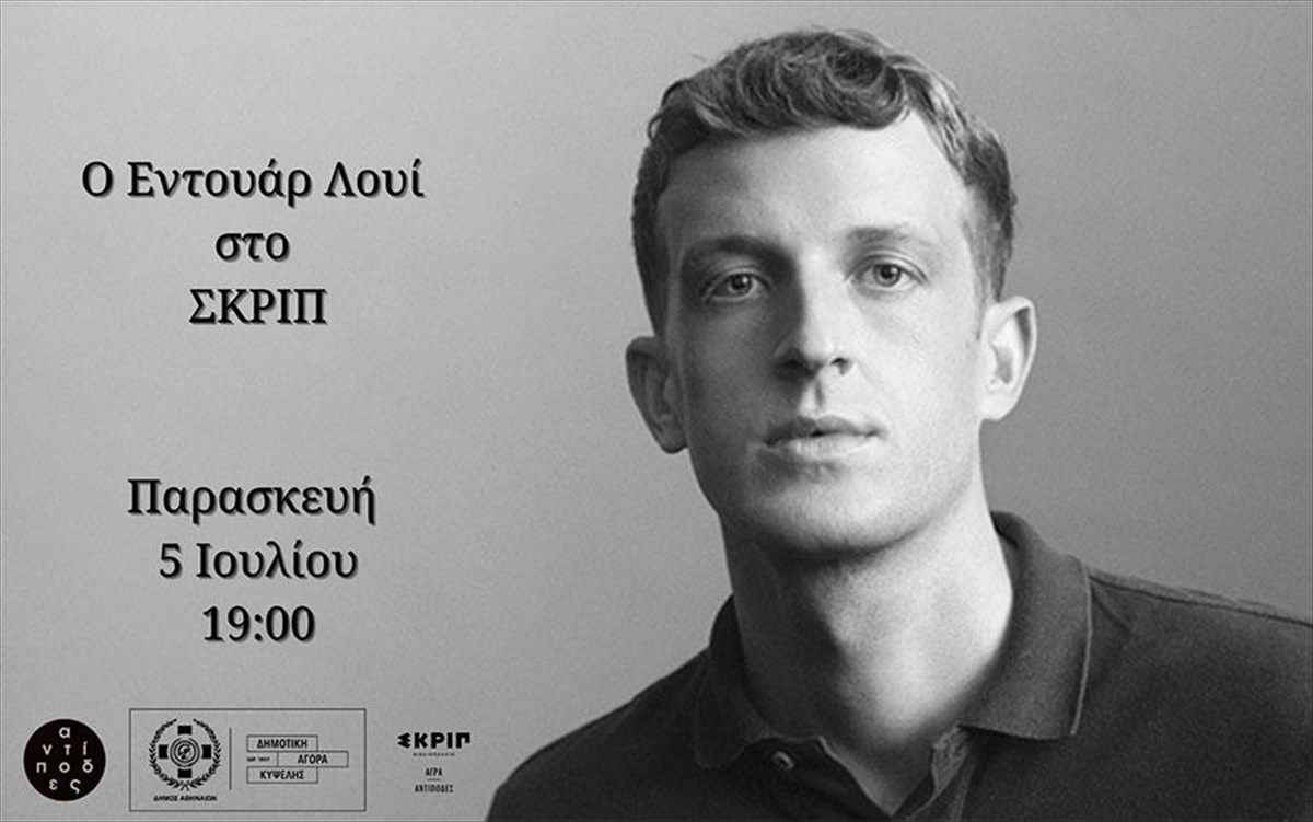 Οι εκδόσεις Αντίποδες και το βιβλιοπωλείο ΣΚΡΙΠ μας καλούν να γνωρίσουμε από κοντά τον Γάλλο συγγραφέα Εντουάρ Λουί στη Δημοτική Αγορά Κυψέλης. Ο συγγραφέας θα συζητήσει με τους παρευρισκόμενους και τις παρευρισκόμενες, θα υπογράψει τα βιβλία του και θα δεχτεί ερωτήσεις.