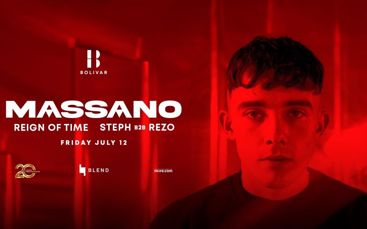 Γνωστός για τον μοναδικό ήχο του που συνδυάζει μελωδική techno και deep house, ο Massano πρόκειται να προσφέρει μια βραδιά γεμάτη υπνωτικά grooves και μελωδίες. Προερχόμενος από την ακμάζουσα μουσική κουλτούρα του Λίβερπουλ, θεωρείται παγκοσμίως ως ένας από τους μεγαλύτερους αστέρες των τελευταίων δύο ετών.