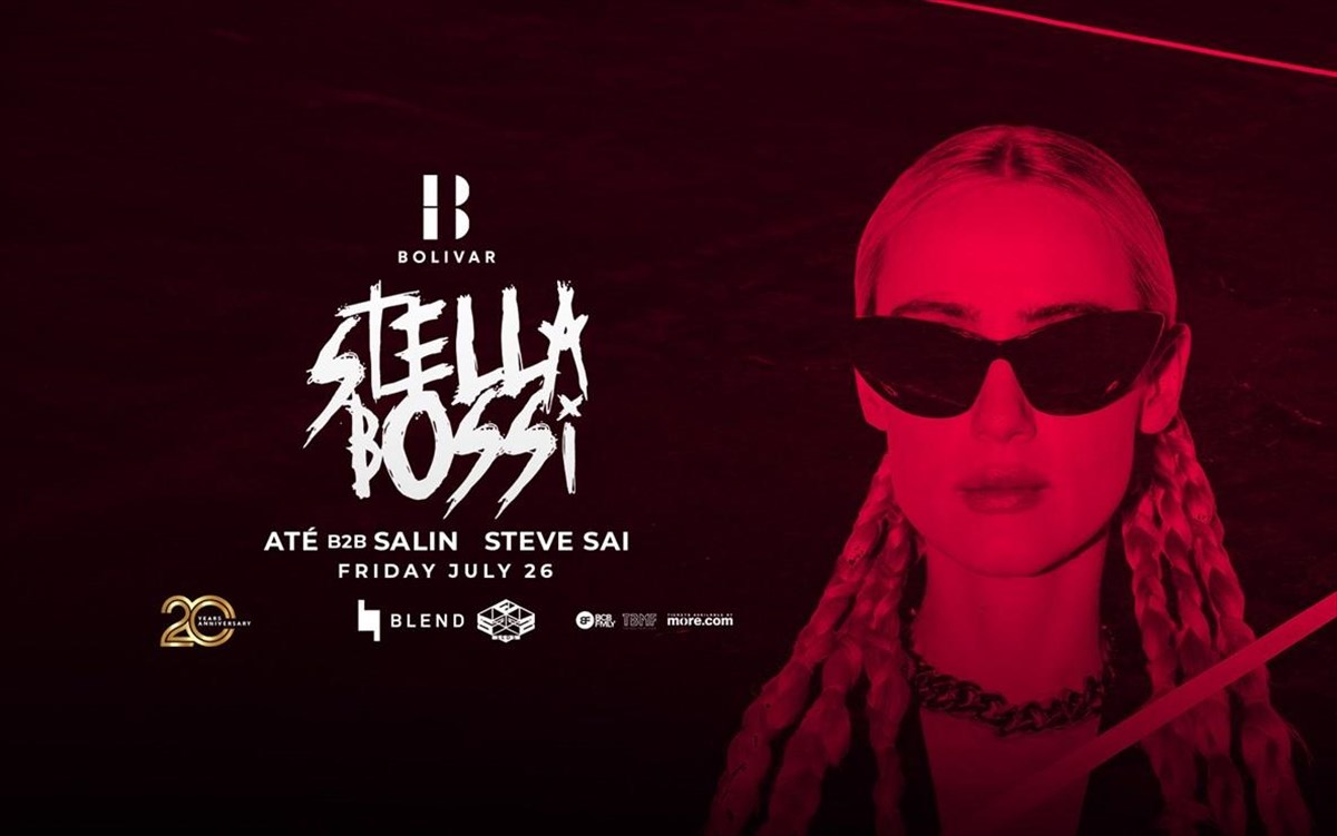 Την Παρασκευή 26 Ιουλίου, Blend & Seds φέρνουν στο Bolivar το πιο δημοφιλές κορίτσι της Βερολινέζικης techno, Stella Bossi. Γνωστή για την εκκεντρική και εξωστρεφή της προσωπικότητα με σήμα κατατεθέν τα μαύρα γυαλιά, έχει κερδίσει μεγάλη δημοτικότητα εκπροσωπώντας τη νέα υβριδική γενιά της techno και έρχεται με το καθηλωτικό της μουσικό στυλ για μια μοναδική βραδιά στο απόλυτο beach club. Με υποστήριξη από τους ΑΤΕ b2b Salin & Steve Sai.