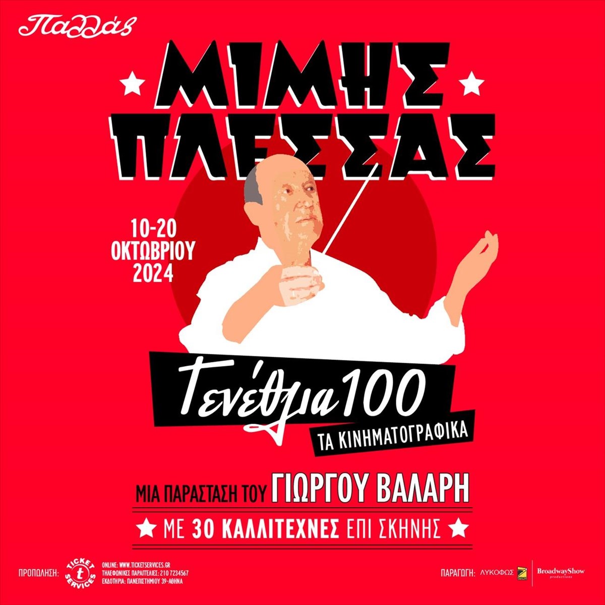 Μια ανεπανάληπτη μουσική γιορτή αφιερωμένη στα εκατοστά γενέθλια του κορυφαίου Έλληνα συνθέτη Μίμη Πλέσσα, έρχεται στο Θέατρο Παλλάς από τον μετρ των μουσικοθεατρικών επιτυχιών Γιώργο Βάλαρη.
