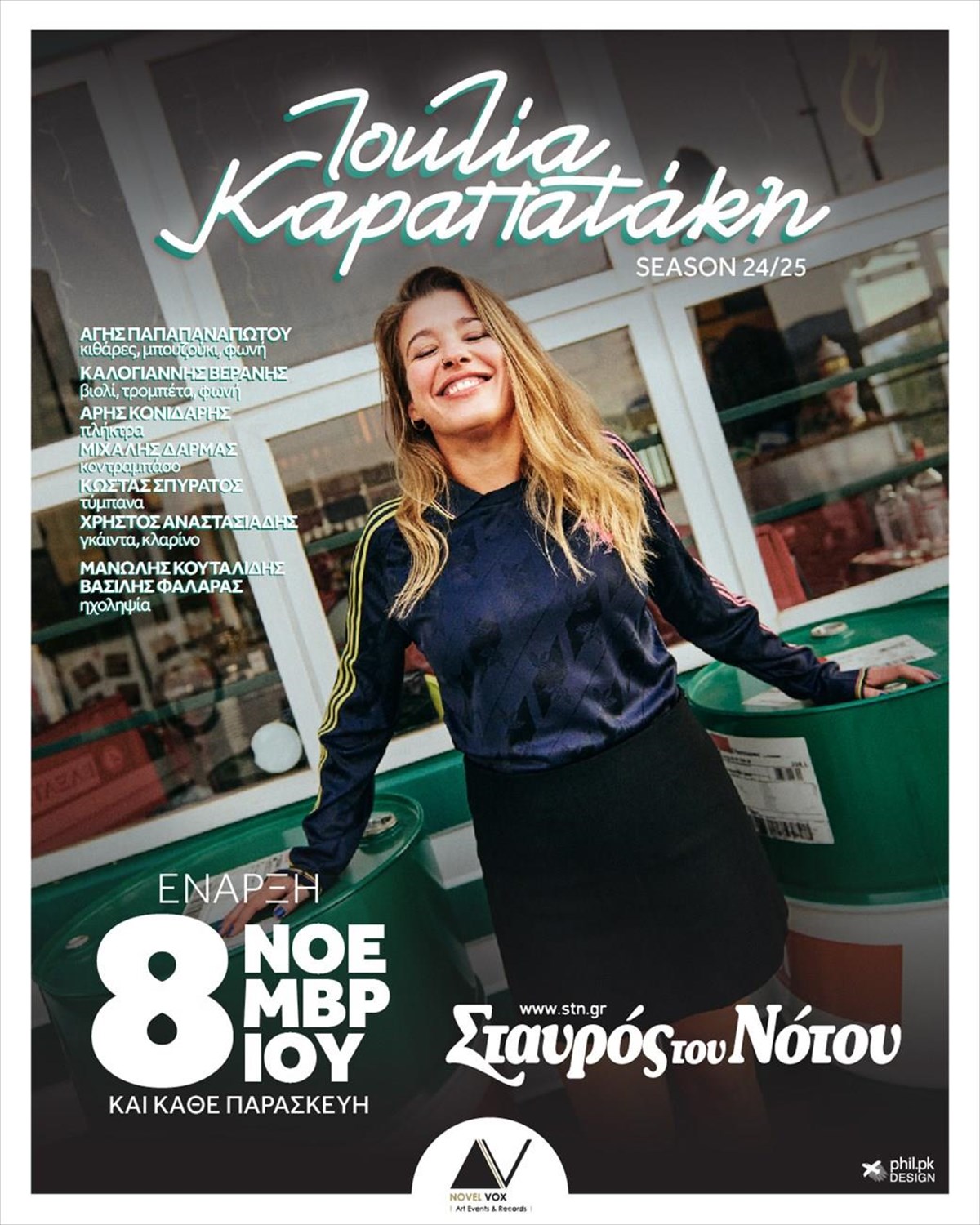 Η Ιουλία Καραπατάκη έρχεται για ακόμη μια χρονιά, με νέο πρόγραμμα στην Κεντρική Σκηνή του Σταυρού του Νότου. Από Παρασκευή 8 Νοεμβρίου και κάθε Παρασκευή θα έχουμε σταθερό ραντεβού στην αγαπημένη μουσική σκηνή της πόλης.