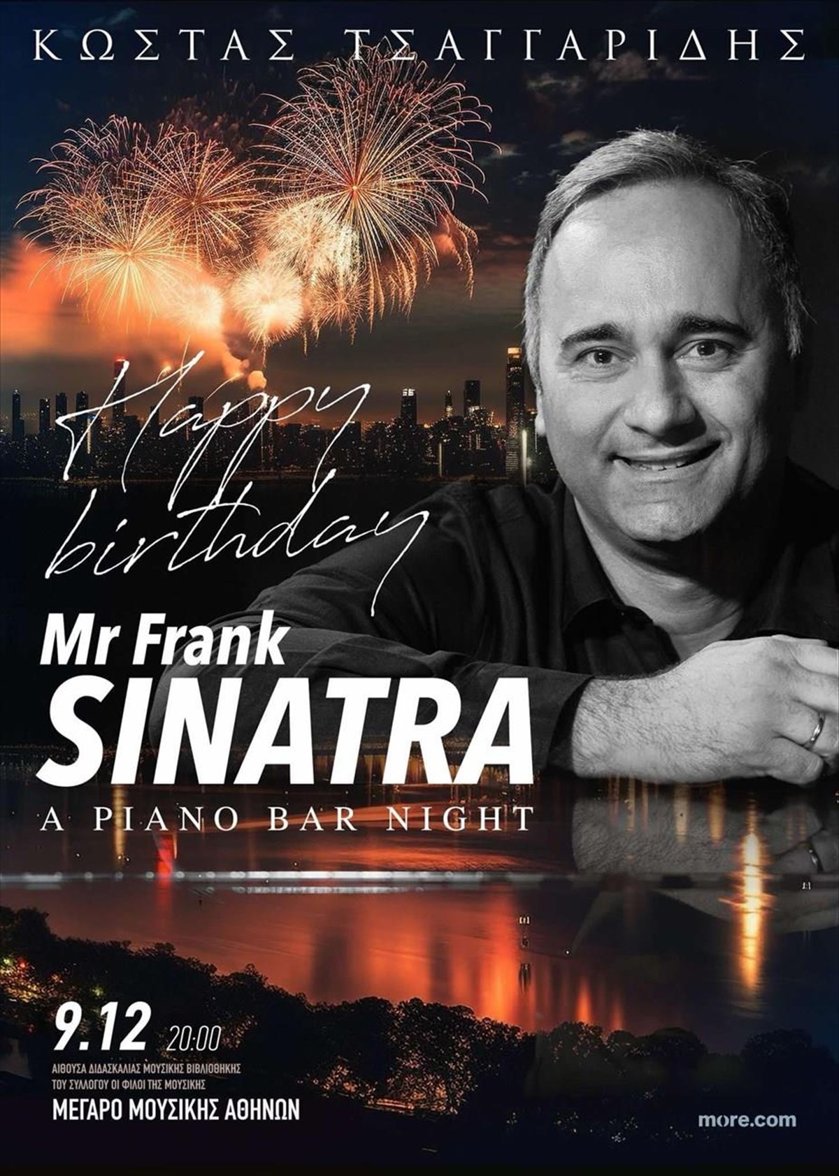 Τη διαχρονική μαγεία του Ol' Blue Eyes φέρνει στο Μέγαρο Μουσικής Αθηνών ο πιανίστας-τραγουδιστής Κώστας Τσαγγαρίδης με το "Happy Birthday Mr. Frank Sinatra", μέσα από κλασικές μελωδίες που γεφυρώνουν το παρελθόν και το παρόν, πυροδοτώντας την ατμόσφαιρα με το μουσικό πνεύμα του Sinatra, τη Δευτέρα 9 Δεκεμβρίου 2024, στις 20:00 στη Μουσική Βιβλιοθήκη «Λίλιαν Βουδούρη».
