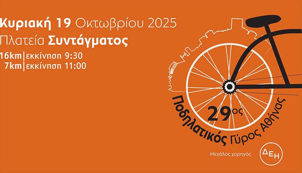 Το κορυφαίο αθλητικό γεγονός του Δήμου Αθηναίων για το ποδήλατο, ο 29ος Ποδηλατικός Γύρος της Αθήνας, επιστρέφει την Κυριακή 19 Οκτωβρίου 2025, με αφετηρία και τερματισμό την πλατεία Συντάγματος. Η διοργάνωση, που υλοποιείται από τον  Οργανισμό Πολιτισμού, Αθλητισμού & Νεολαίας Δήμου Αθηναίων (ΟΠΑΝΔΑ), προσκαλεί τους λάτρεις του ποδηλάτου – τολμηρούς και μη – να ζήσουν μια μοναδική εμπειρία, επιλέγοντας είτε την κλασική διαδρομή των 7 χλμ., είτε να δοκιμάσουν τις αντοχές τους στη διαδρομή των 16 χλμ.
