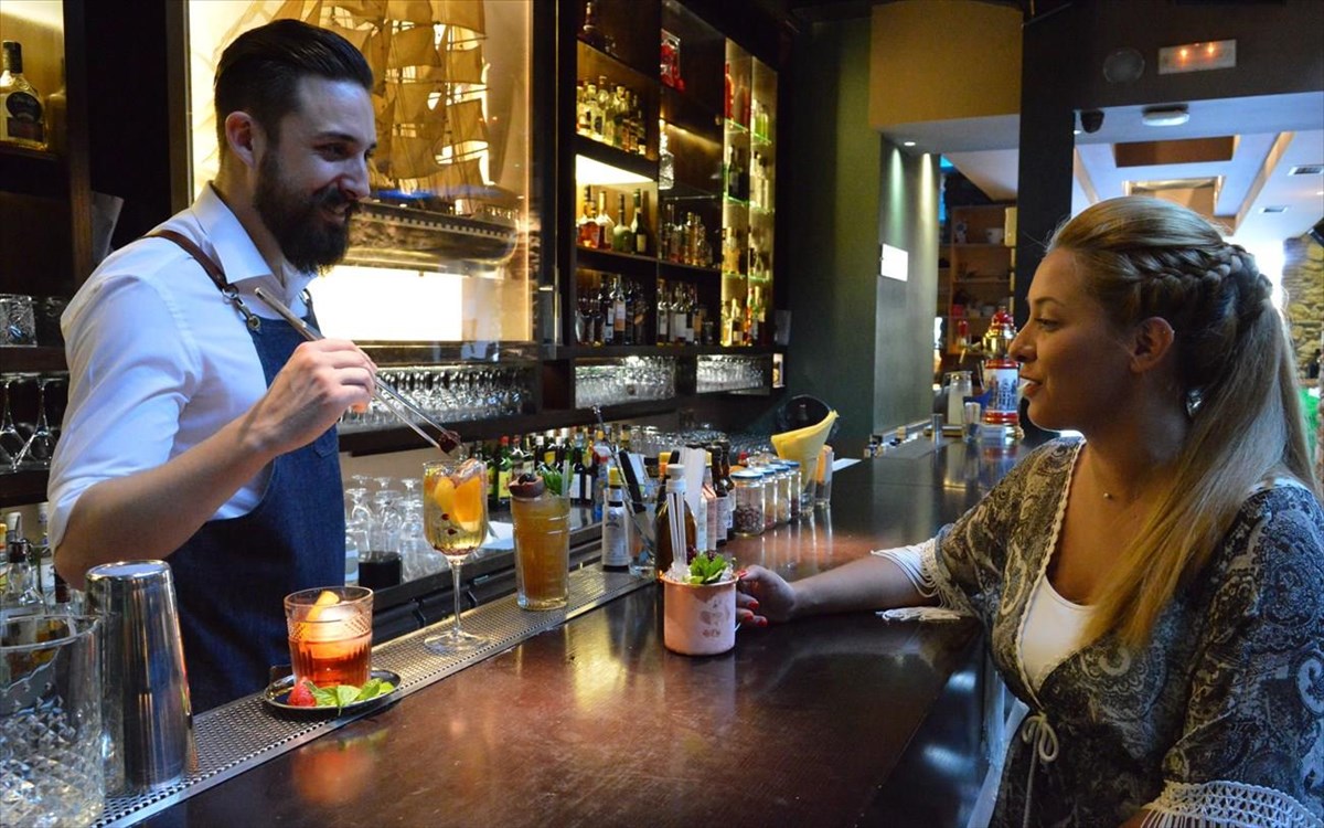 Για τις ανάγκες του ρεπορτάζ «ταλαιπωρήσαμε» τους εξυπηρετικούς και ευγενικούς mixologists, Ιωσήφ Σίσκα και Δημοσθένη Τσίντζιρα, που με μεράκι και ευχαρίστηση μας ετοίμασαν από την «ψαγμένη» signature cocktail list, μια δική τους παραλλαγή του δημοφιλούς Negroni, το «Cosa Nostra», που αποτελείται από strawberry infused Apperol with Hayman’s old Tom Gin, Carpano sweet Vermouth και Bitters, ένα φρουτώδες «Sleeping Beauty» από citrus infused gin, λικέρ ροδάκινο με αφρώδη οίνο και φρέσκα φρούτα, ένα ταξιδιάρικο και διεγερτικό «Rum Julep», αποτελούμενο από Bacardi 8, raspberry λικέρ, φύλλα μέντας και aromatic bitters, καθώς και ένα εξωτικό «Tiki Culture», από Bacardi Black, passion fruit πουρέ, σιρόπι orgeat, pimento λικέρ, φρέσκο χυμό λάιμ και aromatic bitters.