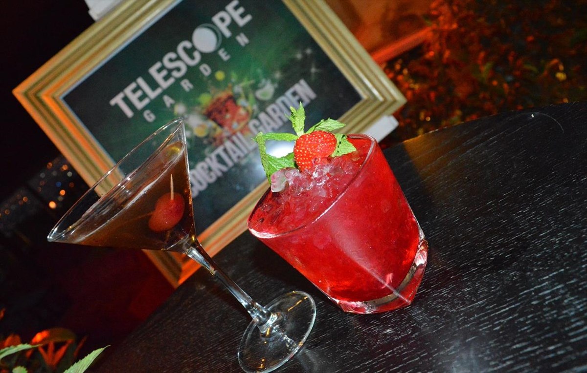 Ο bartender της βραδιάς, Παναγιώτης Κανδρινάκος μάς πρότεινε ένα μαγευτικό «Aviation», που αποτελείται από Bombay, angostura aromatic bitter και violet λικέρ, καθώς και ένα cocktail που μας εκτόξευσε στα άστρα και δεν είναι άλλο από το «Telescope», με moscato d’ asti, παγωμένο μαύρο τσάι, lemoncello, γρεναδίνη και φράουλες.