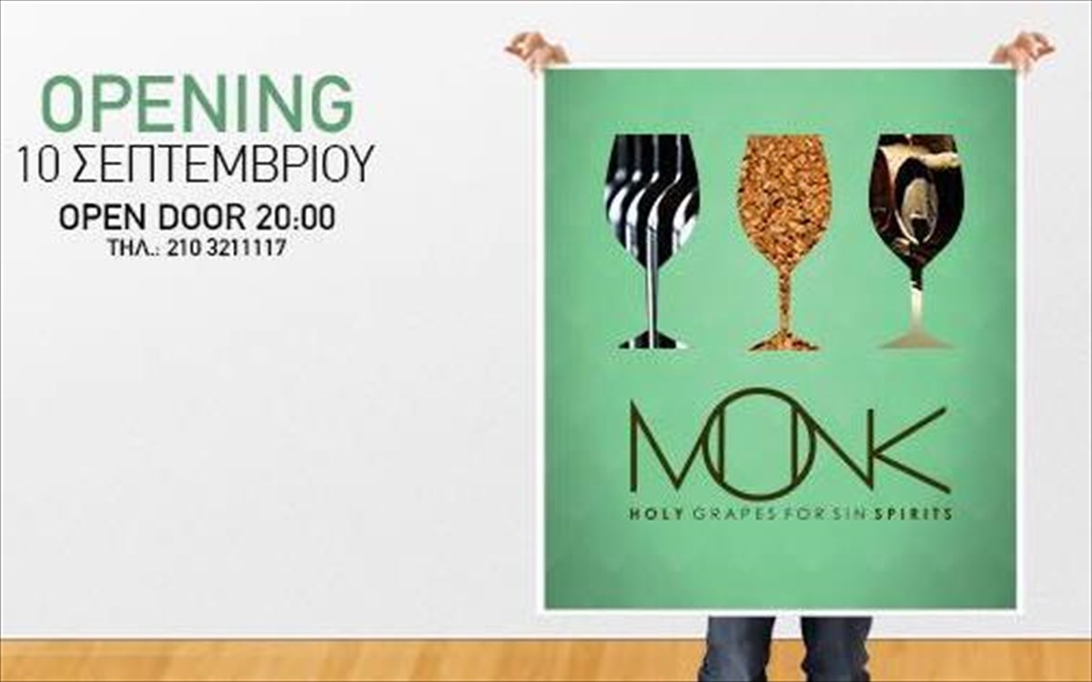 - Ένα παλιό σπίτι στο κέντρο της Αθήνας ανακαινίστηκε, βάφτηκε, απέκτησε διάκοσμο βιομηχανικής αισθητικής, με arty στοιχεία και γεννήθηκε το... «MONK Grapes and Spirits» (Καρόρη 4, Τηλ. 21 0321 1117). Ένα wine bar-resto, πολύ κοντά στο μετρό Μοναστηράκι, με πάνω απο 120 ετικέτες κρασιών και με πρωτότυπη ελληνομεσογειακή κουζίνα. Ένας κομψός, σύγχρονος χώρος με δυναμική οινο-γευστική ισορροπία, ανοιχτός από το πρωί με καφέ, χυμούς και διάφορα snack, συνεχίζει το μεσημέρι και μέχρι αργά το βράδυ. Η κουζίνα κλείνει στη 1.00 με ένα άκρως ενδιαφέρον menu για τους λάτρεις της γαστρονομίας. Το βράδυ της Πέμπτης στις 20.00 θα πραγματοποιηθούν τα εγκαίνια, οπότε όσοι πιστοί προσέλθετε!