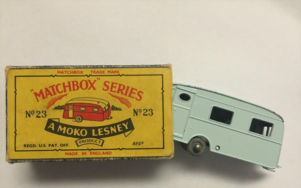 Η ιδέα της κατασκευής ενός παιχνιδιού σε μέγεθος που να χωράει σε ένα σπιρτόκουτο ξεκίνησε από τον Jack Odell ο οποίος έβλεπε την κόρη του να βάζει σκαραβαίους και χρυσαλίδες σε σπιρτόκουτα αφού στο σχολείο της δεν επιτρεπόταν να φέρνουν μαζί τους κάτι μεγαλύτερο από αντικείμενα που χωρούσαν σε ένα σπιρτόκουτο. Όταν εκείνη προσπαθούσε να χωρέσει την πρώτη μεγάλη επιτυχία της εταιρείας Lesney που πειραματιζόταν στην αγορά παιχνιδιών, την άμαξα της βασίλισσας στο σπιρτόκουτο της είπε «Απλά, δεν γίνεται!». Τότε του ήρθε η ιδέα να φτιάξει κάτι που θα χωρούσε στο κουτί της, οι συμμαθητές της ξετρελάθηκαν και τότε μπήκε η ιδέα για μαζική παραγωγή μικρών παιχνιδιών σε μινιατούρες.Ο Richard Kohnstam της ΜΟΚΟ είχε την ιδέα να συσκευάζονται σε κουτιά μεγέθους σπιρτόκουτου και έτσι το 1953 Lesney Products & MOKO κατοχύρωσαν την ονομασία Matchbox και ξεκίνησε η χρυσή εποχή τους. Τα πρώτα μοντέλα κυκλοφόρησαν στο τέλος του 1953 και παρουσιάστηκαν επισήμως στο Harrogate Toy Fair τον Ιανουάριο του 1954.