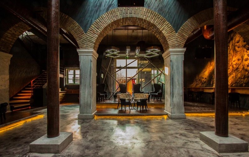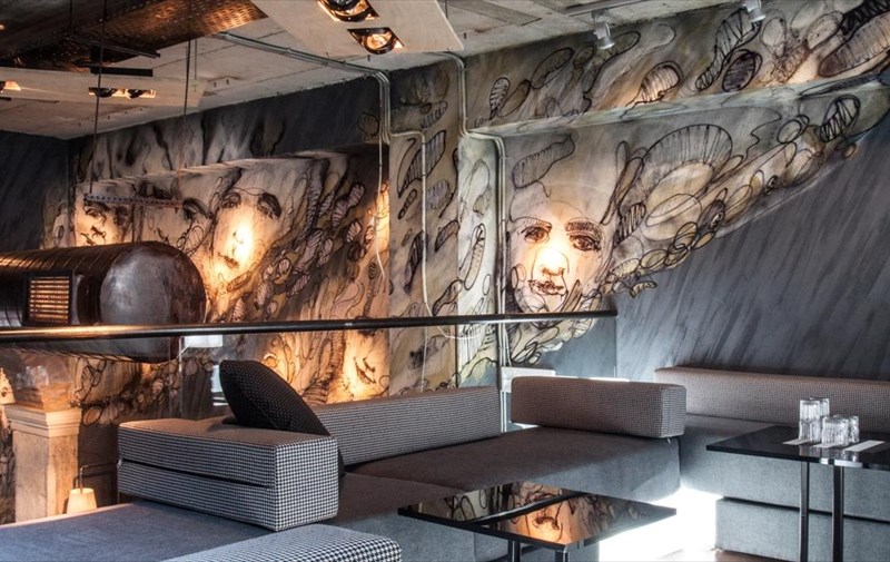 Ένα mural - σύννεφο πορτρέτων και ψυχών (γκράφιτι 17 μέτρων) υψώνεται ως τον δεύτερο όροφο, ενώ η κινητή φωτισμένη βιτρίνα ποτών πίσω από το μπαρ, διατρέχει το εργοστασιακό εσωτερικό του κτιρίου, φτάνοντας μέχρι και τον τρίτο όροφο.