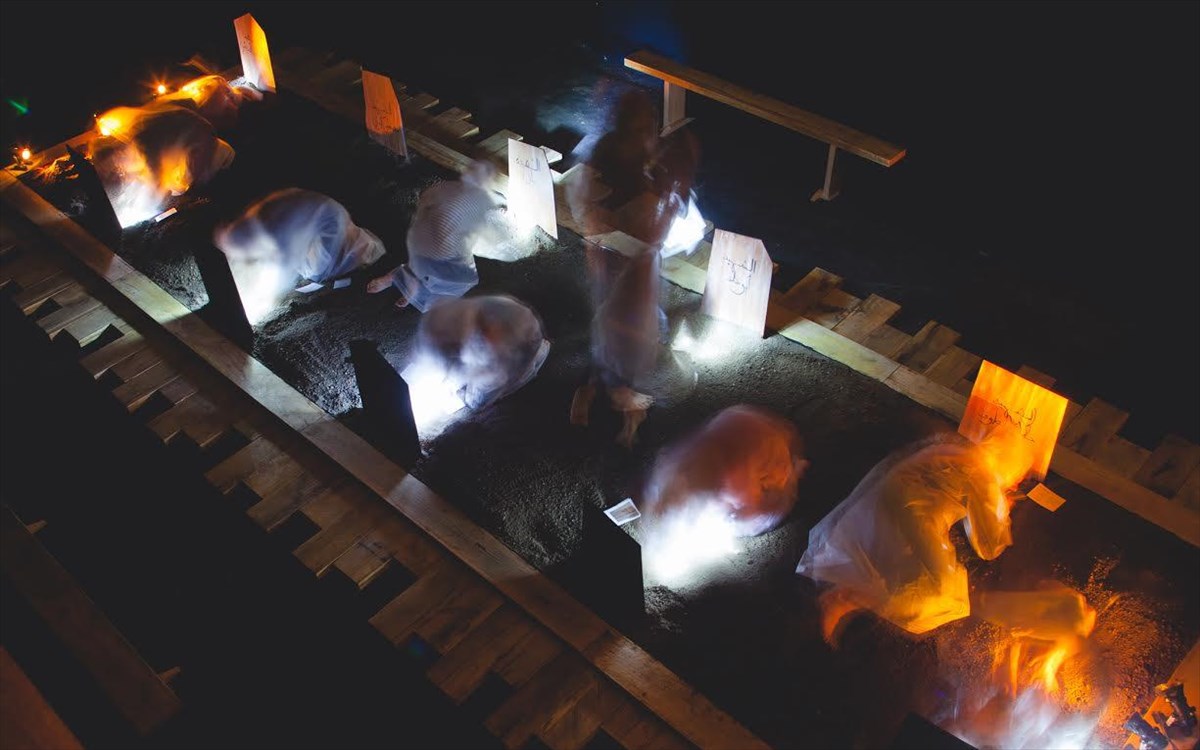 Μόλις δέκα θεατές κάθε φορά γίνονται οι μύστες αυτού του τελετουργικού μνήμης και καλούνται να εμπλακούν, ψυχή τε και σώματι, πολιτικά και συναισθηματικά, σκύβοντας πάνω από τους «τάφους» των δέκα θυμάτων ενός καθεστώτος καταπίεσης.