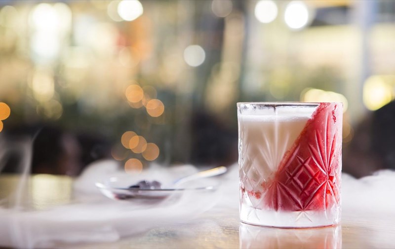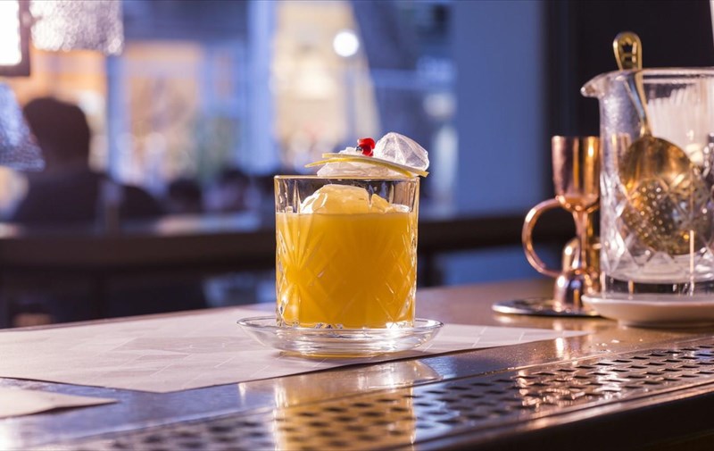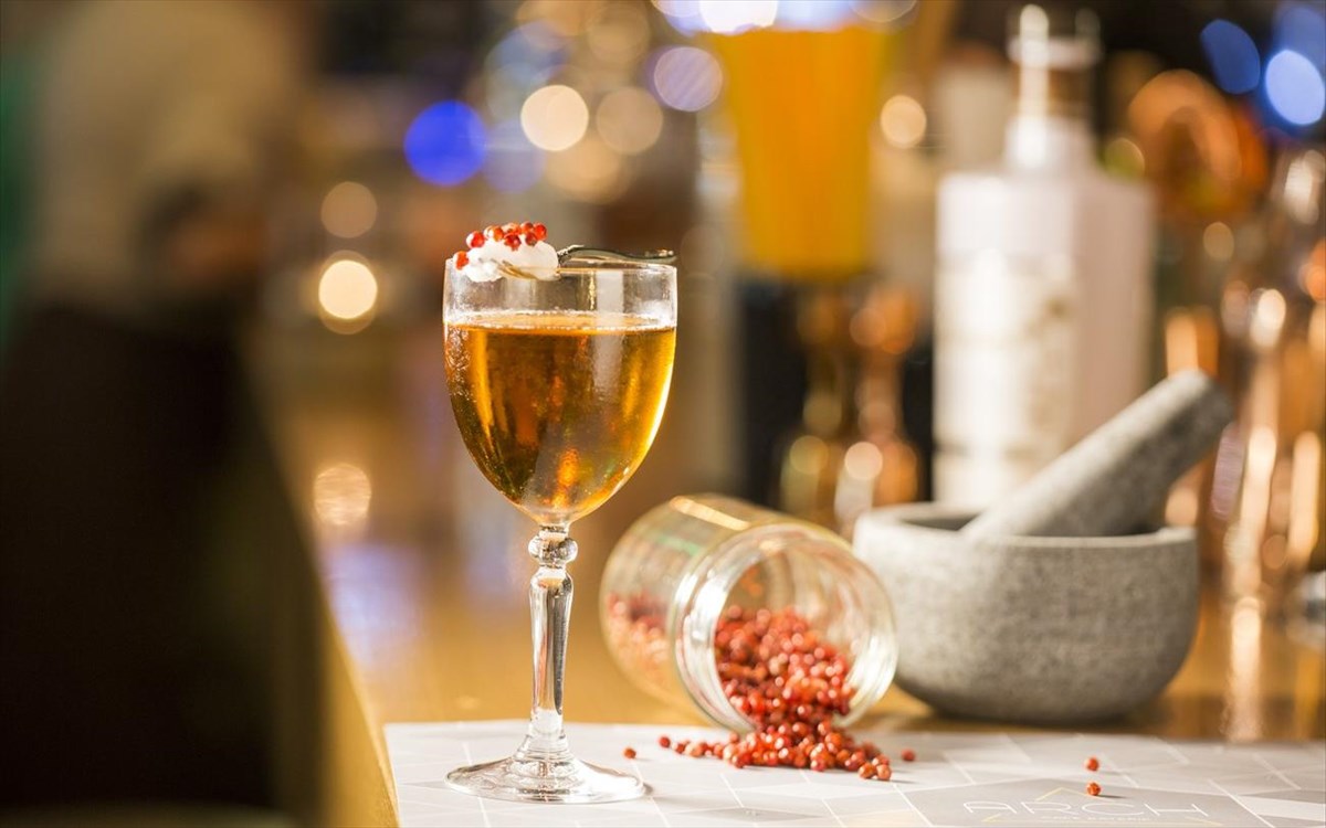 Χαλαρώστε μετά από μια γεμάτη μέρα με ένα Hesperia με παλαιωμένο ρούμι Κούβας, χυμό μοσχολέμονου, lychee και σιρόπι τριαντάφυλλο, με πάγο από χαμομήλι και chips καραμέλας. Ή ταξιδέψτε στην Ιαπωνία με ένα Kioku με sake, sherry, λάιμ, πουρέ από λευκόσαρκο ροδάκινο και πορτοκάλι και χαβιάρι μελιού.