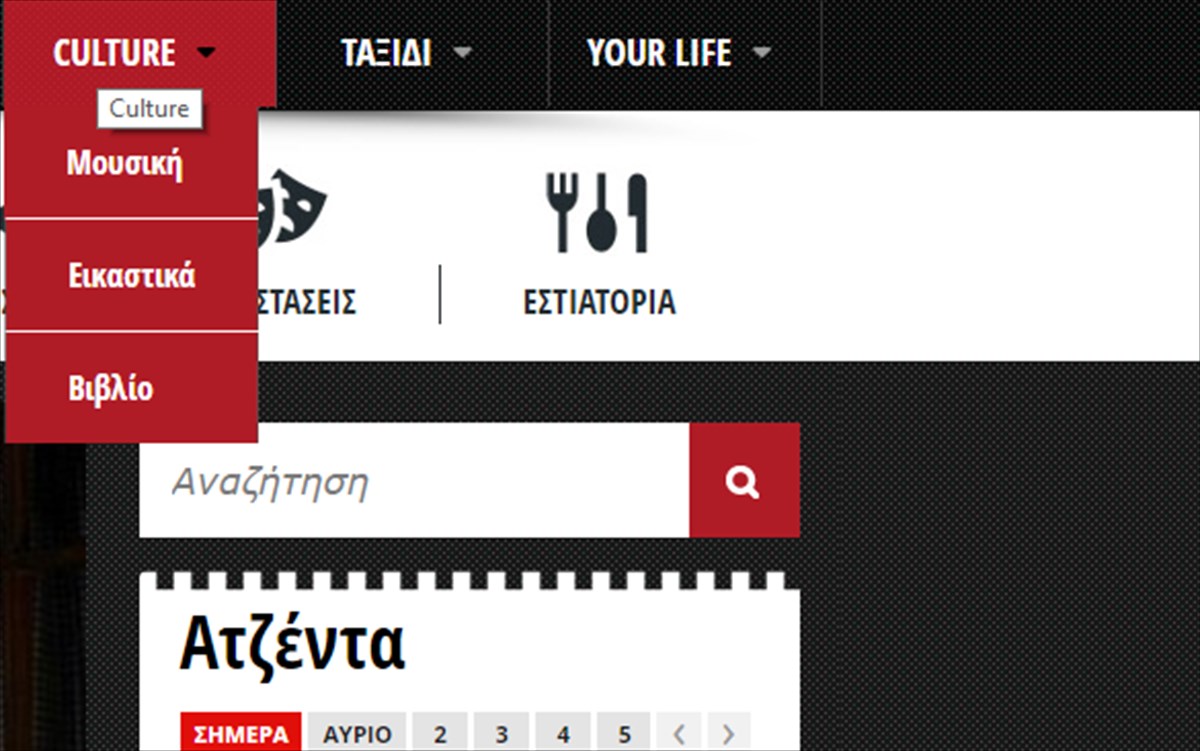 Το ίδιο συμβαίνει και στην ενότητα της Γεύσης με εμφανώς διαχωρισμένο το υλικό για την ελληνική, την διεθνή κουζίνα, το ποτό/καφέ και φυσικά, τις παρουσιάσεις από γαστρονομικά στέκια που επισκεφτήκαμε.