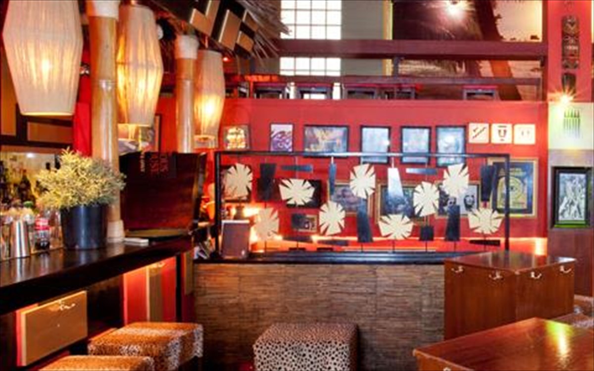 Tiki Bar- Vintage αισθητική, κόκκινοι τοίχοι, λεοπάρ καθίσματα, μπαμπού και αφίσες από την εποχή του exploitation κινηματογράφου, μια μικρή σκηνή για live, και ένας τεράστιος κατάλογος cocktails, αλλά και burgers, συνθέτουν το κλίμα ενός μαγαζιού στο Κουκάκι, που πριν τα cocktail bars γίνουν τάση στη διασκέδαση, ήταν ένα κοινό μυστικό για τους λάτρεις των «περίεργων ποτών», της surf μουσικής και των ταινιών του Ταραντίνο.