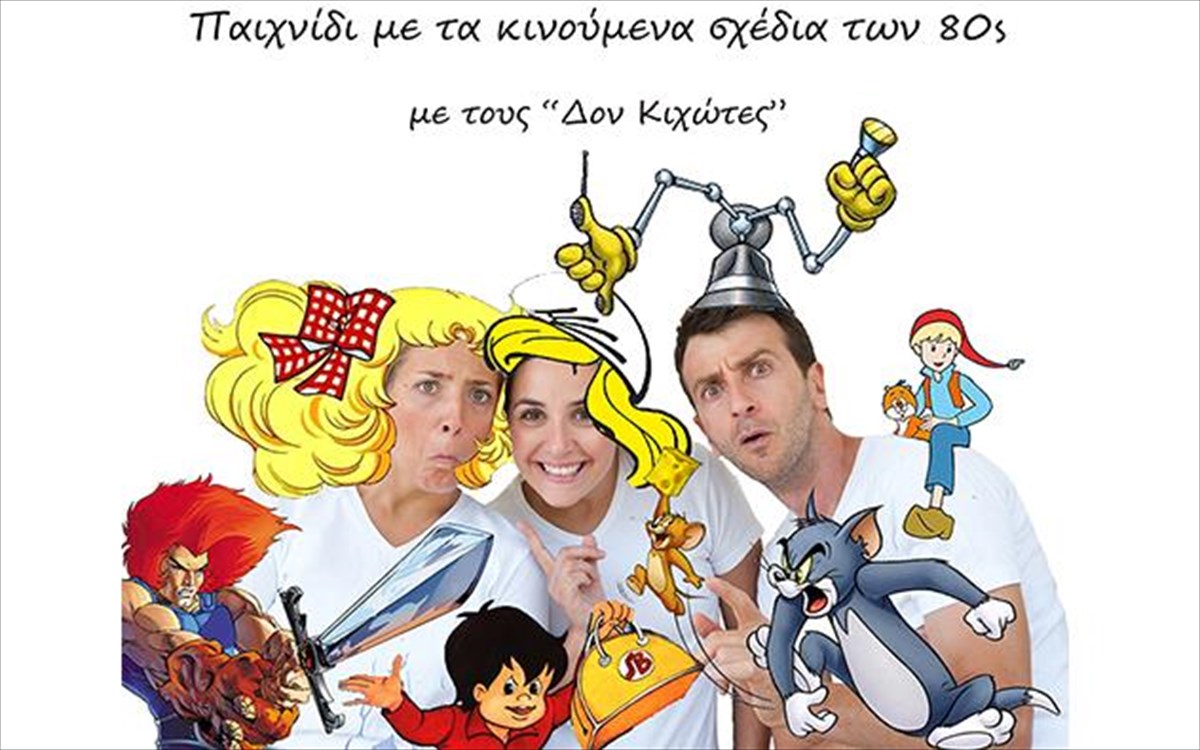 Ποια είναι η Κάντυ Κάντυ; Πού ταξίδεψε ο Νιλς Χόλγκερσον; Πόσοι ήταν οι Θάντερκατς; Πού μένει ο Αστυνόμος Σαίνης; Τι δεν είχε μέσα το τσαντάκι του Σπορτ Μπίλι; Αυτά και άλλα βασανιστικά ερωτήματα θα φωτίσουμε στις Κυριακές στην Τεχνόπολη, με παιχνίδια και μουσικές από τα κινούμενα σχέδια της δεκαετίας του ‘80. Η Ομάδα Θεάτρου Δον Κιχώτες προσκαλεί τους μικρούς επισκέπτες της έκθεσης GR80s. Η Ελλάδα του 80 στην Τεχνόπολη να γνωρίσουν τα κινούμενα σχέδια με τα οποία μεγάλωσαν… οι γονείς τους! *Το πρόγραμμα διαρκεί 70΄και απευθύνεται σε παιδιά από 4 ετών και άνω.