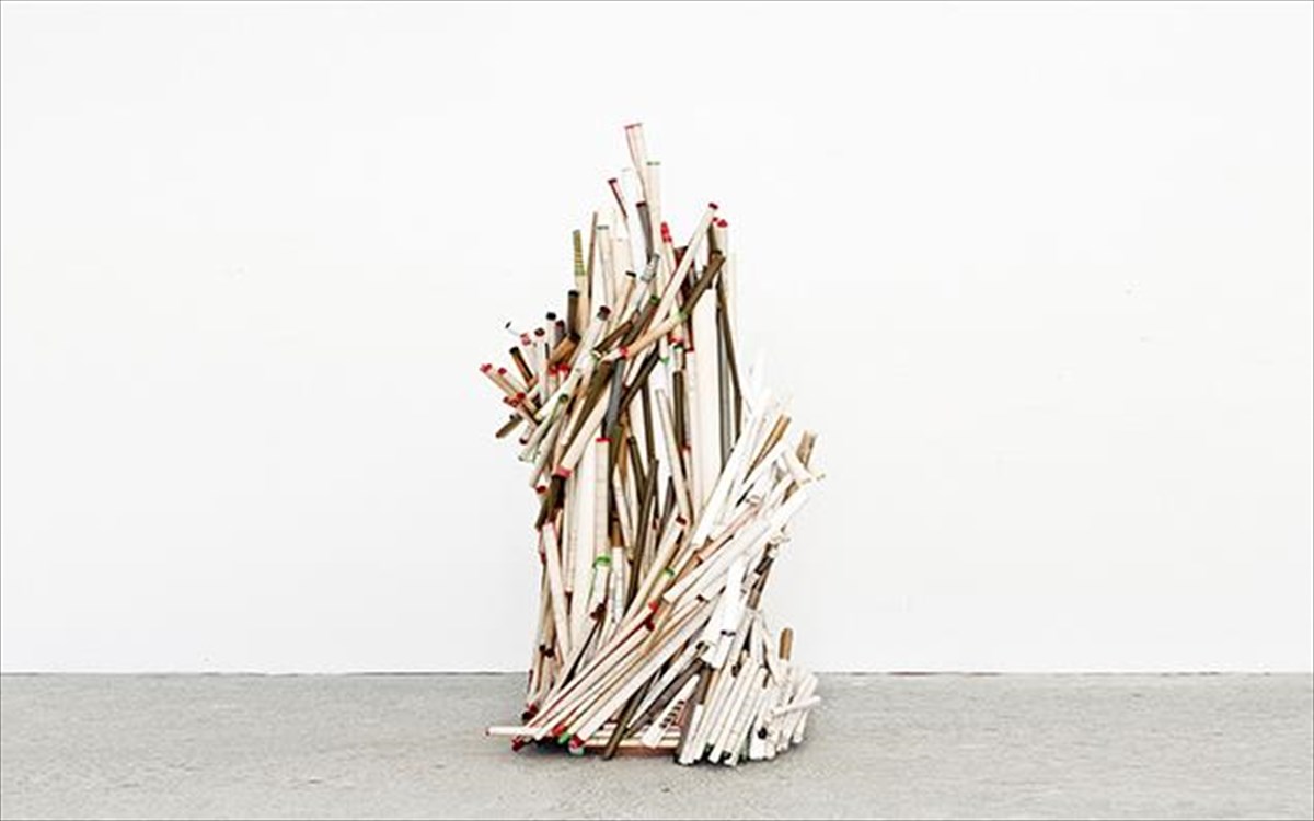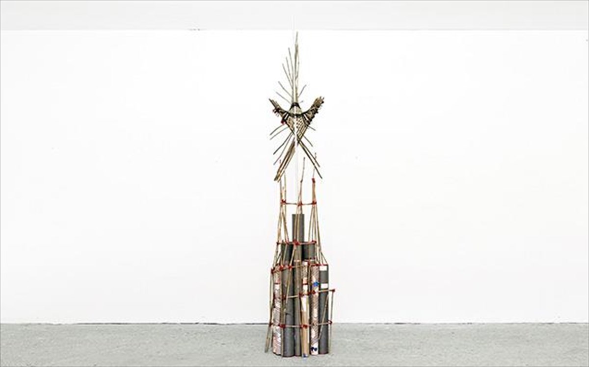 Photo by Dimitris FoutrisMaro Fasouli, Unknown Relatives, 2017, architectural plan tubes and cases, canes, thread, 120x62x220cm_Courtesy of the artist and CAN Chistina Androulidaki Gallery