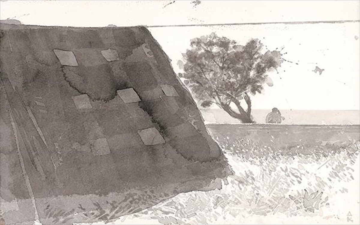 Ο Κωνσταντίνος Παπαγεωργίου σημειώνει στο δικό του κείμενο: «Η Δύση του Κατσιγιάννη είναι μεσογειακή, όχι πάρα πολύ δυτική, λοιπόν. Είναι ωστόσο μοντέρνα, με την έννοια ότι πολλές φορές βλέπουμε στη δουλειά του ανθρώπους στις αμμουδιές, αλλά μετρημένους, σε αυτήν την ενδιάμεση κατάσταση που όλοι γνωρίζουμε και επιδιώκουμε όταν είμαστε σε “διακοπή” ή σε μια κατάσταση ημισυνειδησίας, ενδεχομένως, στην οποία περιάγουμε τους εαυτούς μας καταναλώνοντας την περισσότερο ή λιγότερο εκβιομηχανοποιημένη περίοδο που ονομάζουμε καλοκαιρινή διακοπή».