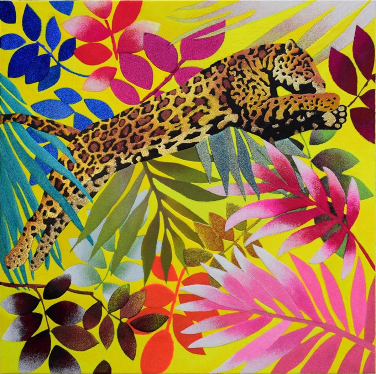 Ειδικότερα, στις επιφάνειες των μεγάλων καμβάδων, κεντρικές μένουν οι φιγούρες των άγριων ζώων που περιβάλλονται από σχηματοποιημένο και ξεκάθαρο άνθινο πλαίσιο - μοτίβο, υποδηλώνοντας τον φυσικό τους τόπο. Οι μορφές τους που είναι ρεαλιστικές, άλλοτε κοιτούν κατάματα τον θεατή, όπως η επιβλητική τίγρης, και άλλοτε βρίσκονται σε κίνηση, όπως η λεοπάρδαλη που αποτυπώνεται στον διασκελισμό της ή ο πάνθηρας που στέκει επιφυλακτικά σαν να είναι έτοιμος να επιτεθεί και να αντιμετωπίσει τον όποιο κίνδυνο.