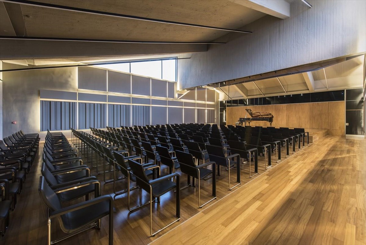 Επί σχεδόν τέσσερις δεκαετίες, η αίθουσα συναυλιών Άρης Γαρουφαλής έχει φιλοξενήσει αμέτρητες διπλωματικές εξετάσεις, διαγωνισμούς, συναυλίες και άλλες εκδηλώσεις του ιστορικού ιδρύματος στο ημιτελές εμβληματικό κτίριο του αρχιτέκτονα Ιωάννη Δεσποτόπουλου στην οδό Ρηγίλλης.