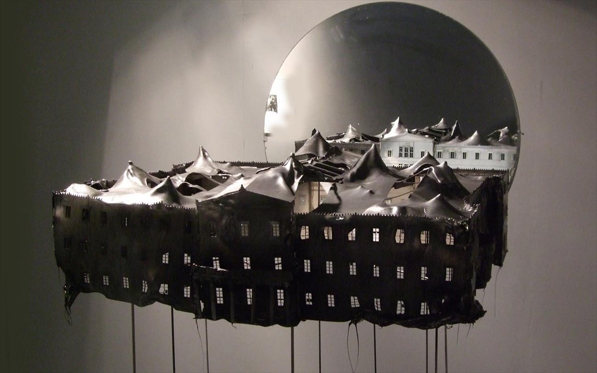 Άγγελος Αντωνόπουλος, Η άλλη όψη, 2014, Πολυστερινη, σιλικόνη, μέταλλο, καθρέφτης, 90 x 90 x 150 εκ.