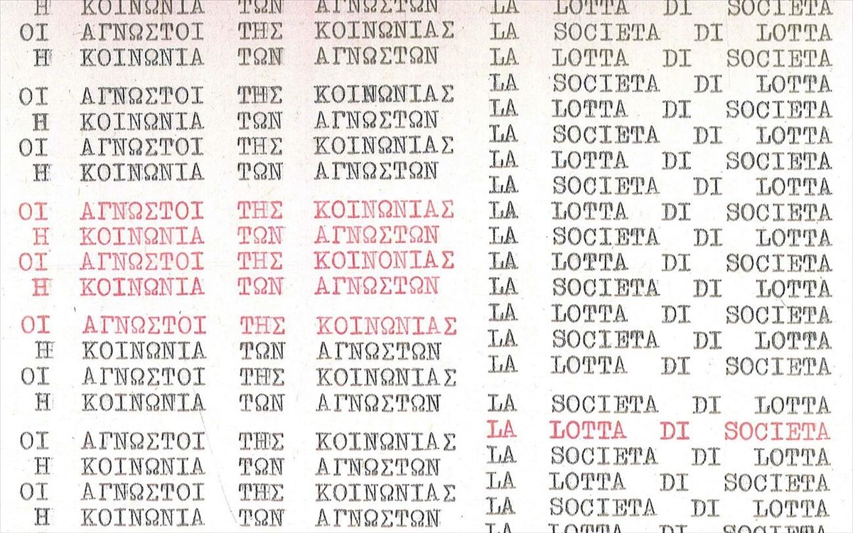 Άρης Προδρομίδης, Per il concetto sociale [Για την έννοια της κοινωνίας], 2001, Χαρτί, μελάνι γραφομηχανής, φωτοτυπία, 58 x 78 x 5 εκ, (Λεπτομέρεια)