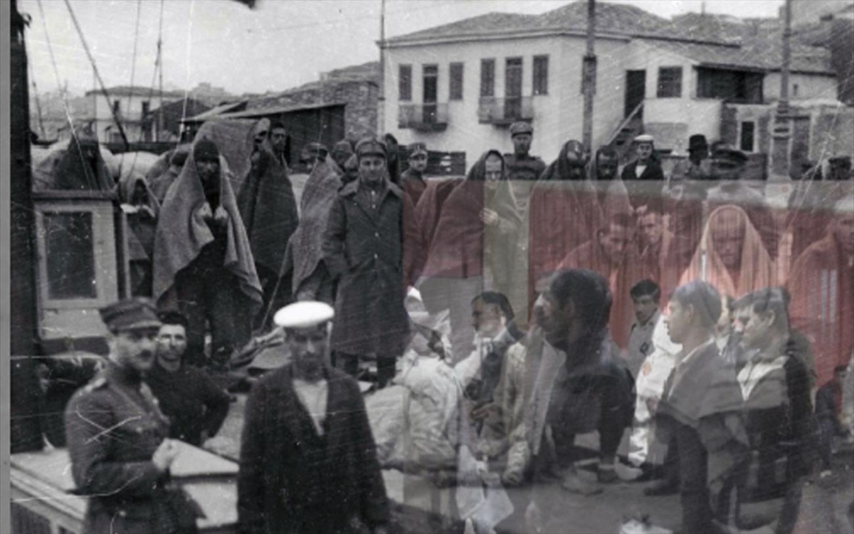 Άφιξη των προσφύγων από την Μικρά Ασία στην Ελευσίνα,1922. Ψηφιακή εκτύπωση, 250 x 180 cm.