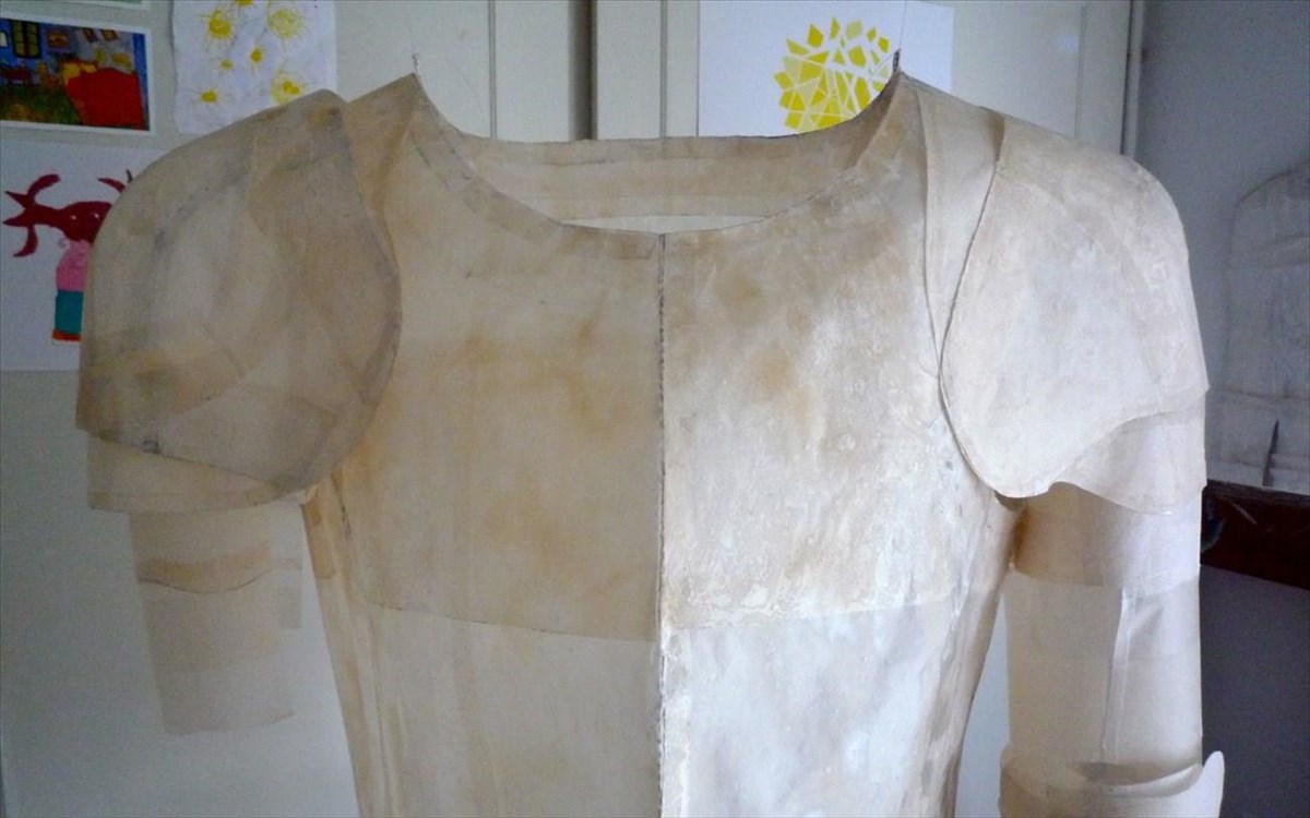 Νίκος Ποδιάς, Inside Out, 2018, Εγκατάσταση, χάρτινη πανοπλία, Φυσικό μέγεθος