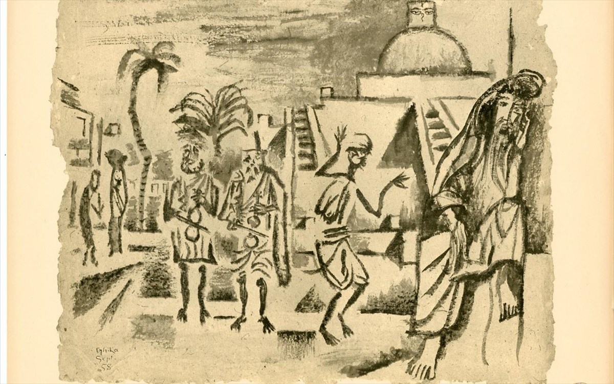 Νίκος Χατζηκυριάκος-Γκίκας, Εικονογραφημένο χειρόγραφο για την ποιητική συλλογή Nous avons του Réne Char, Γκουάς σε χαρτι και χαρτόνι, Μουσείο Μπενάκη / Πινακοθήκη Γκίκα, ©2018 Μουσείο Μπενάκη.