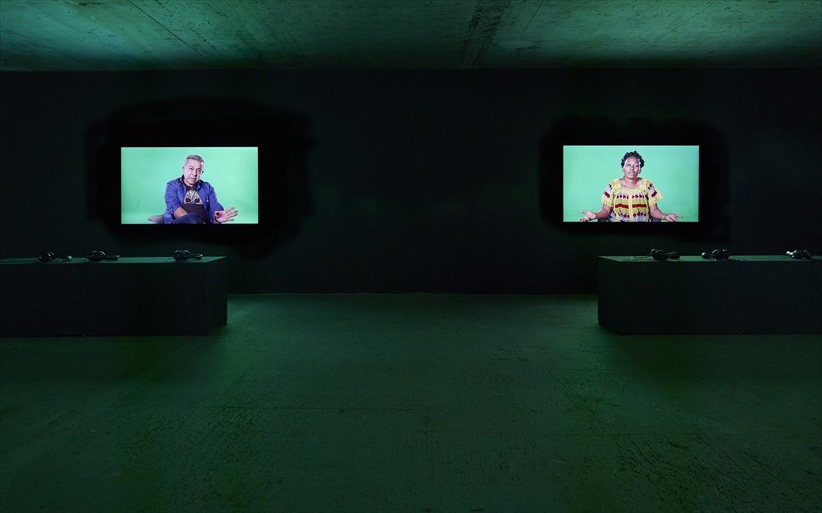 Στον δεύτερο χώρο της έκθεσης, οι θεατές καλούνται να δουν τις αρχικές, αμοντάριστες συνεντεύξεις των ίδιων των προσφύγων και μεταναστών. Μεταξύ αυτών και τη συγκλονιστική μαρτυρία της Σάρας Μαρντίνι, της 23χρονης από τη Συρία που το 2015 διέσχισε κολυμπώντας τη θάλασσα μεταξύ Τουρκίας και Λέσβου, σώζοντας παράλληλα 18 συμπατριώτες της από τον πνιγμό, επέστρεψε στη Λέσβο την επόμενη χρονιά, για να βοηθήσει τις ακτιβιστικές ομάδες, και συνελήφθη πέρυσι από τις ελληνικές αρχές με την κατηγορία της παράνομης διακίνησης προσφύγων –μια σύλληψη που προκάλεσε σάλο διεθνώς.