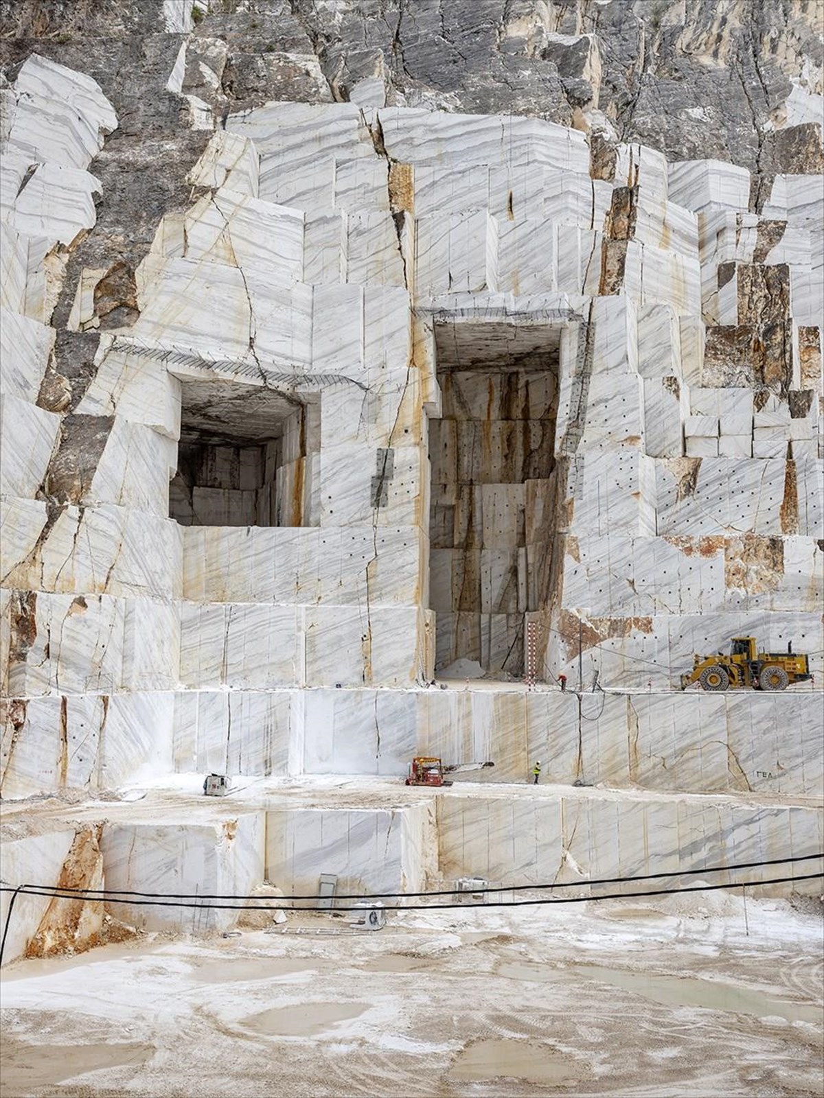 Η γοητεία που ασκεί το μάρμαρο οδήγησαν την Έφη Χαλιορή να ξεκινήσει το 2018 μία φωτογραφική περιπλάνηση σε διάφορα σημεία της χώρας. Τα τελευταία δύο χρόνια επισκέφθηκε μία σειρά από λατομεία στο Διόνυσο, την Πεντέλη, τη Δράμα, την Πάρο, την Τήνο και τη Θάσο όπου ξεκίνησε να αποτυπώνει με τον φακό της εικόνες από λατομεία ενεργά αλλά και ξεχασμένα, εγκαταλελειμμένα ή πολύβοα, λατομεία όπου η εξόρυξη γίνεται μέσα από στοές και τούνελ στο κέντρο τεράστιων ορεινών όγκων και άλλα όπου οι λίθινοι κύβοι-μαμούθ αφαιρούνται εξωτερικά, σμιλεύοντας το βουνό σαν ένα είδος γιγάντιας γλυπτικής που μεταμορφώνει το τοπίο αφήνοντας πίσω της τα οικολογικά της σημάδια.