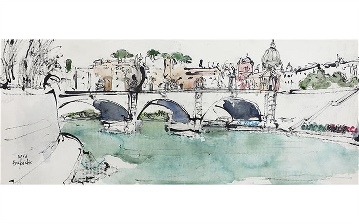 Άποψη της Ρώμης με την γέφυρα Emanuele II και στο βάθος ο τρούλος του Αγίου Πέτρου.
