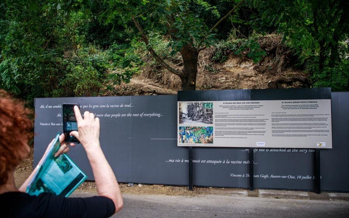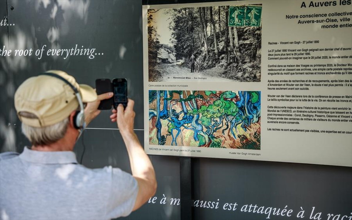 EPA / CHRISTOPHE PETIT TESSONΗ ελαιογραφία που ζωγράφισε τον Ιούλιο του 1890 απεικονίζει κορμούς και ρίζες στην πλαγιά ενός λόφου, και ως φαίνεται ήταν το τελευταίο τοπίο που θαύμασε και αποτύπωσε στον καμβά του ο Βαν Γκογκ. Και αυτό ακριβώς το τοπίο αναζητούν πλέον οι μεγάλοι εραστές της τέχνης του ζωγράφου σε μια προσπάθεια να αφουγκραστούν ό,τι είχε κινήσει την έμπευση στον Βαν Γκογκ.