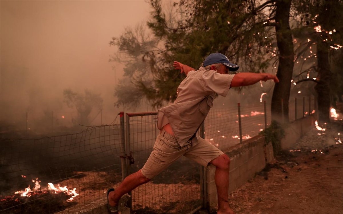 Ακολουθούν 20 στιγμιότυπα από τις πυρκαγιές της Αττικής και της Εύβοιας που ξεχωρίσαμε. Στιγμιότυπα που καταγράφουν τον πόνο και την απελπισία μπροστά στην ένταση της τραγωδίας. Στιγμιότυπα που αποτυπώνουν τον πανικό, την εγκατάλειψη και τη βίαιη αποκόλληση από τα κεκτημένα. Και στιγμιότυπα που εντοπίζουν τα ψήγματα αισιοδοξίας. Γιατί πάντα υπάρχουν και αυτά στον όλεθρο.
