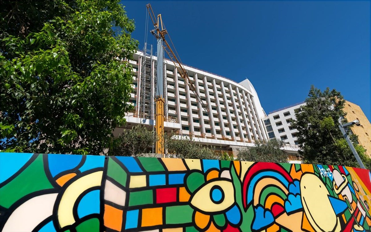 Στην περίφραξη του κτιριακού συγκροτήματος που φιλοξενούσε το ξενοδοχείο Hilton Athens και μετατρέπεται σε έναν νέο προορισμό πόλης.