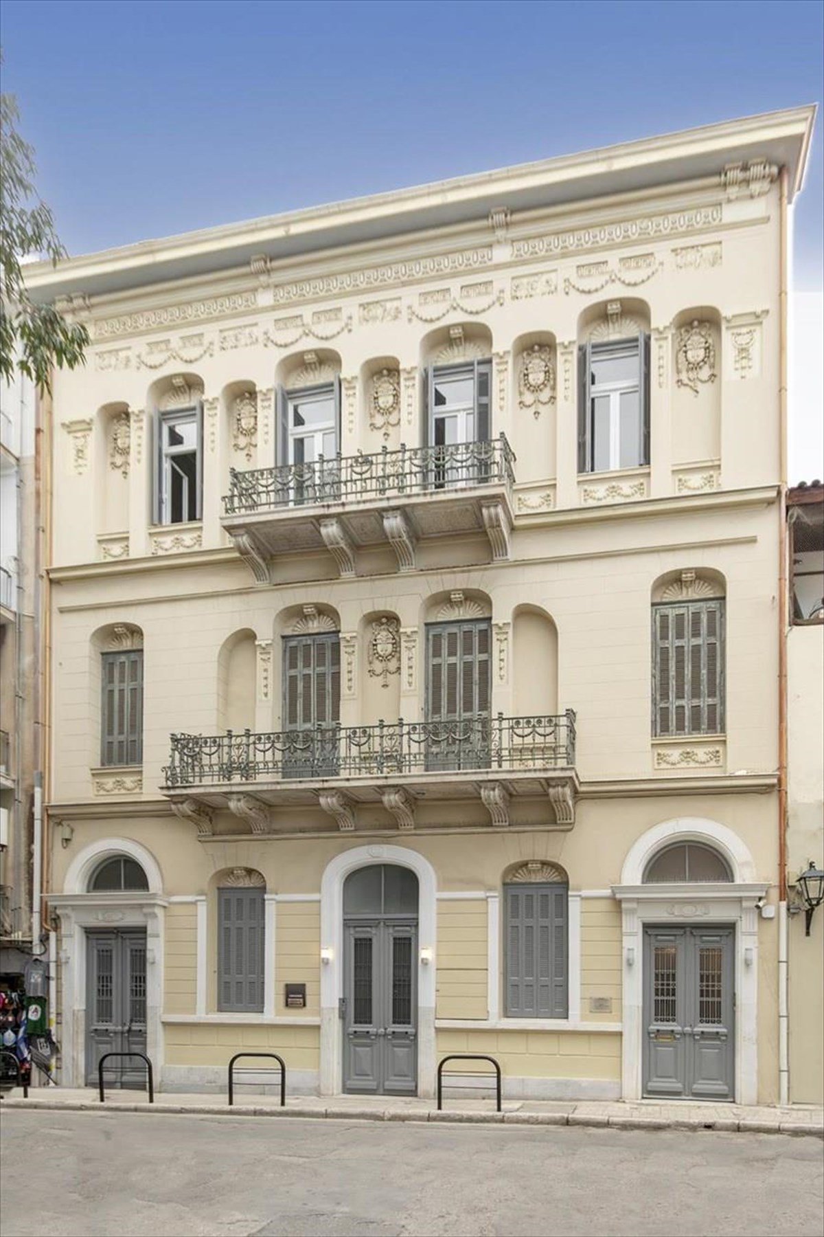 Το κτίριο της οδού Φρυνίχου 16 είναι χτισμένο το 1910. Έχει χαρακτηριστεί διατηρητέο από το Υπουργείο Πολιτισμού το 1978 και μνημείο αρχιτεκτονικής κληρονομιάς που χρειάζεται ειδική προστασία, καθώς παρουσιάζει εξαιρετικό και μορφολογικό ενδιαφέρον με έντονα στοιχεία εκλεκτικισμού της περιόδου 1920-1930. Επιπλέον, η διακόσμηση της πρόσοψής του είναι εντυπωσιακή, με επιτυχημένη χρήση των αψίδων στα ανοίγματα. Το κτίριο σώζεται σε άριστη κατάσταση και δένει αρμονικά με το περιβάλλον, καθώς η οδός Φρυνίχου αποτελεί μια από τις οδούς προσπέλασης της Πλάκας και διασώζει αρκετά αξιόλογα κτίσματα της ίδιας περιόδου. Το 1989 πραγματοποιήθηκε διώροφη προσθήκη με υπόγειο κατ’ επέκταση του υπάρχοντος διατηρητέου κτιρίου. Σύμφωνα με τη νομοθεσία, απαγορεύεται η αφαίρεση, η αλλοίωση ή η καταστροφή των επιμέρους διακοσμητικών και αρχιτεκτονικών του στοιχείων αλλά και του ίδιου του κτιρίου. Παρά τον εξωτερικό εκλεκτικιστικό-νεομπαρόκ πλούσιο διάκοσμο, στον εσωτερικό του χώρο δεν έχει κάποια αντίστοιχη αρχιτεκτονική.