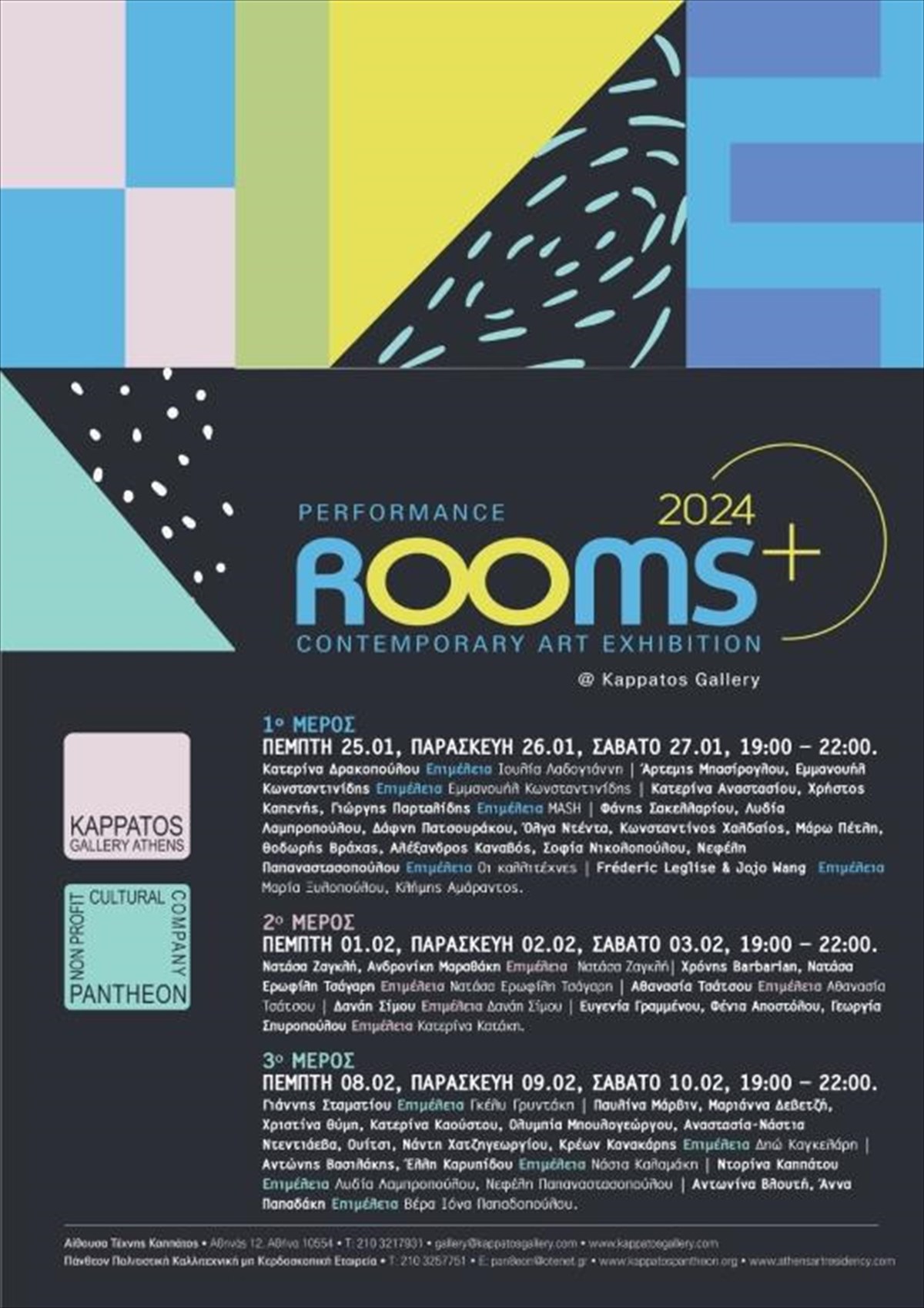 Η Αίθουσα Τέχνης Καππάτος και η Εταιρεία Πάνθεον ΑΜΚΕ παρουσιάζουν την Έκθεση Σύγχρονης Τέχνης με τίτλο «Performance ROOMS2024» στην Αίθουσα Τέχνης Καππάτος, Αθηνάς 12, Μοναστηράκι, Αθήνα.